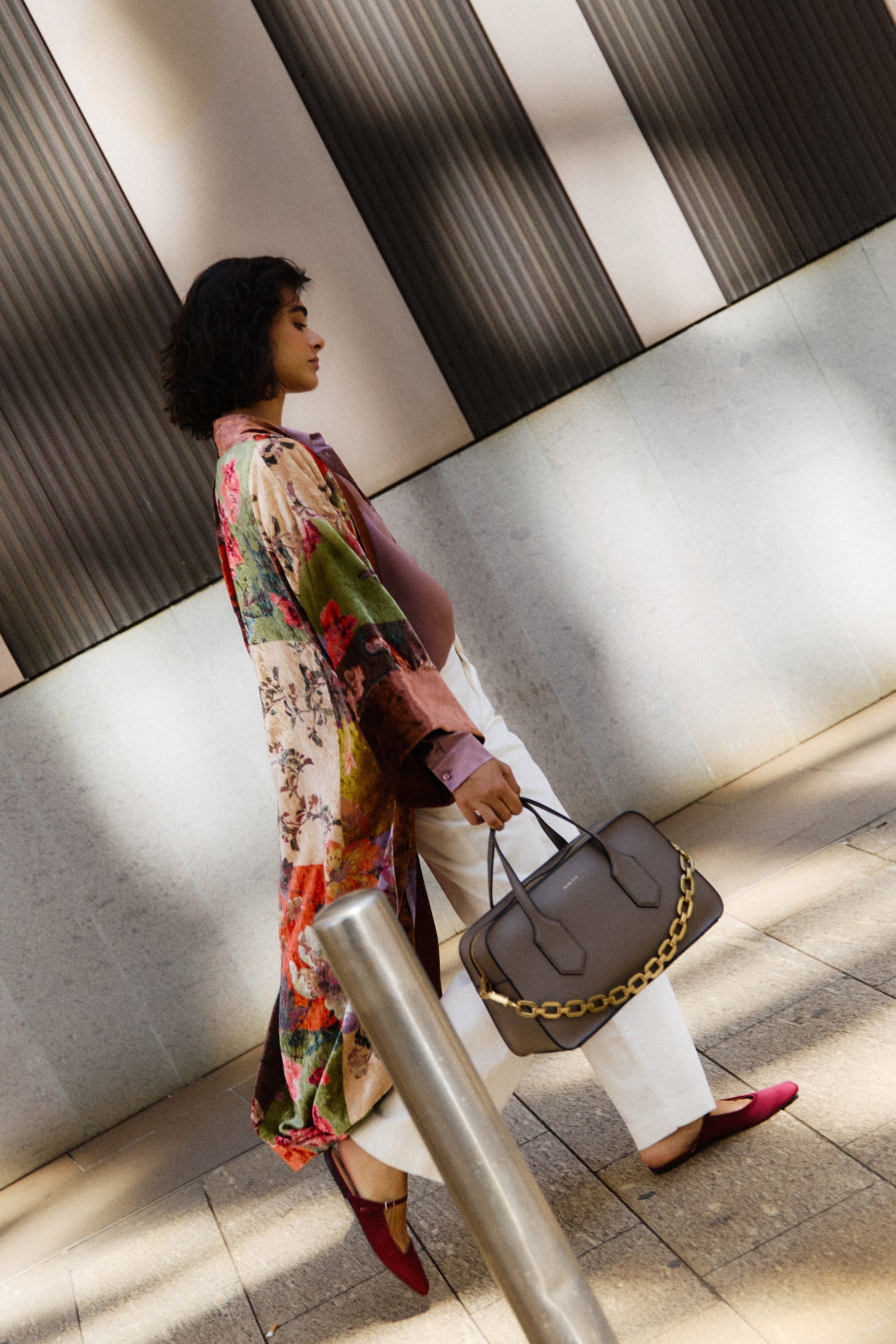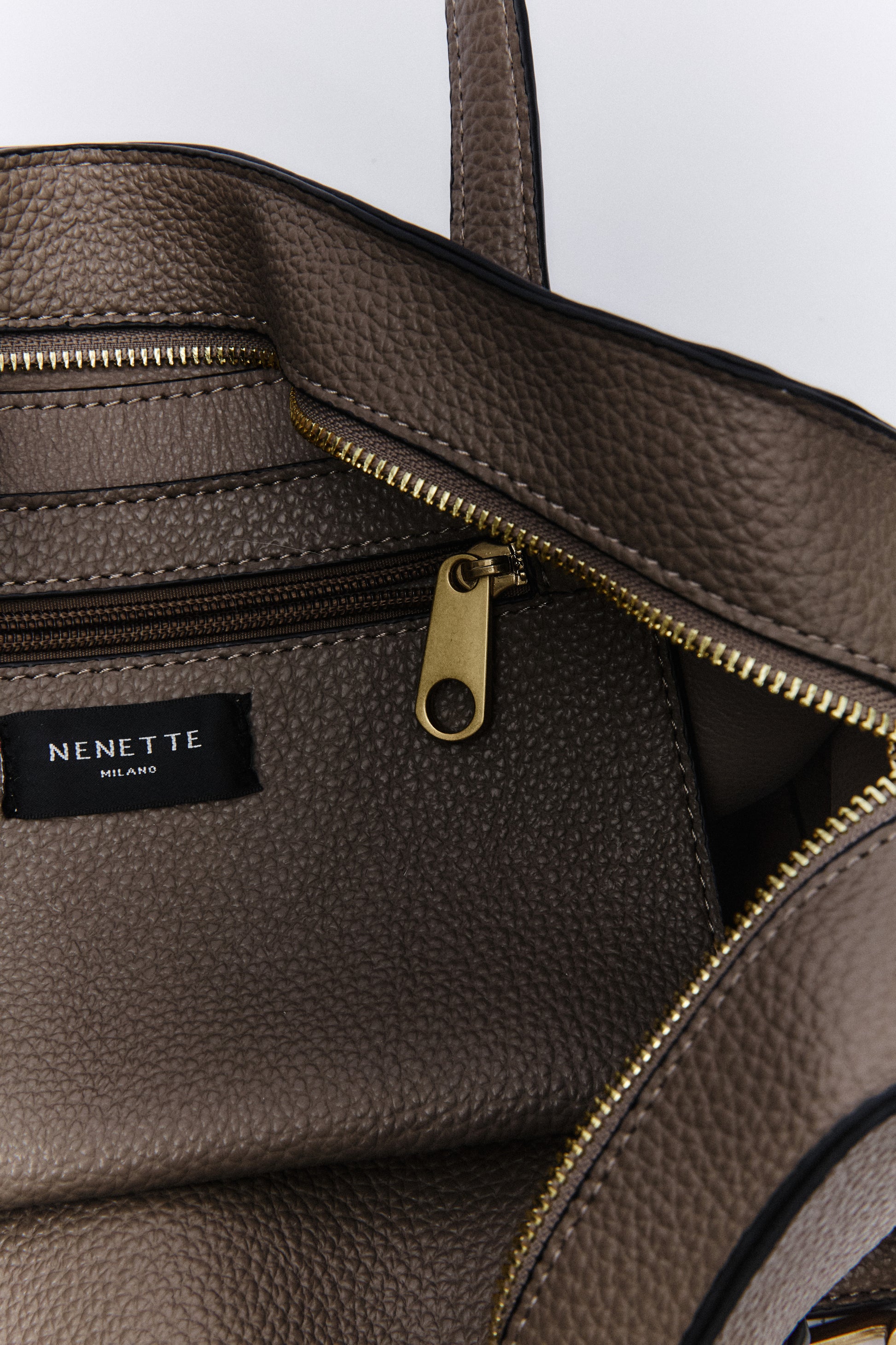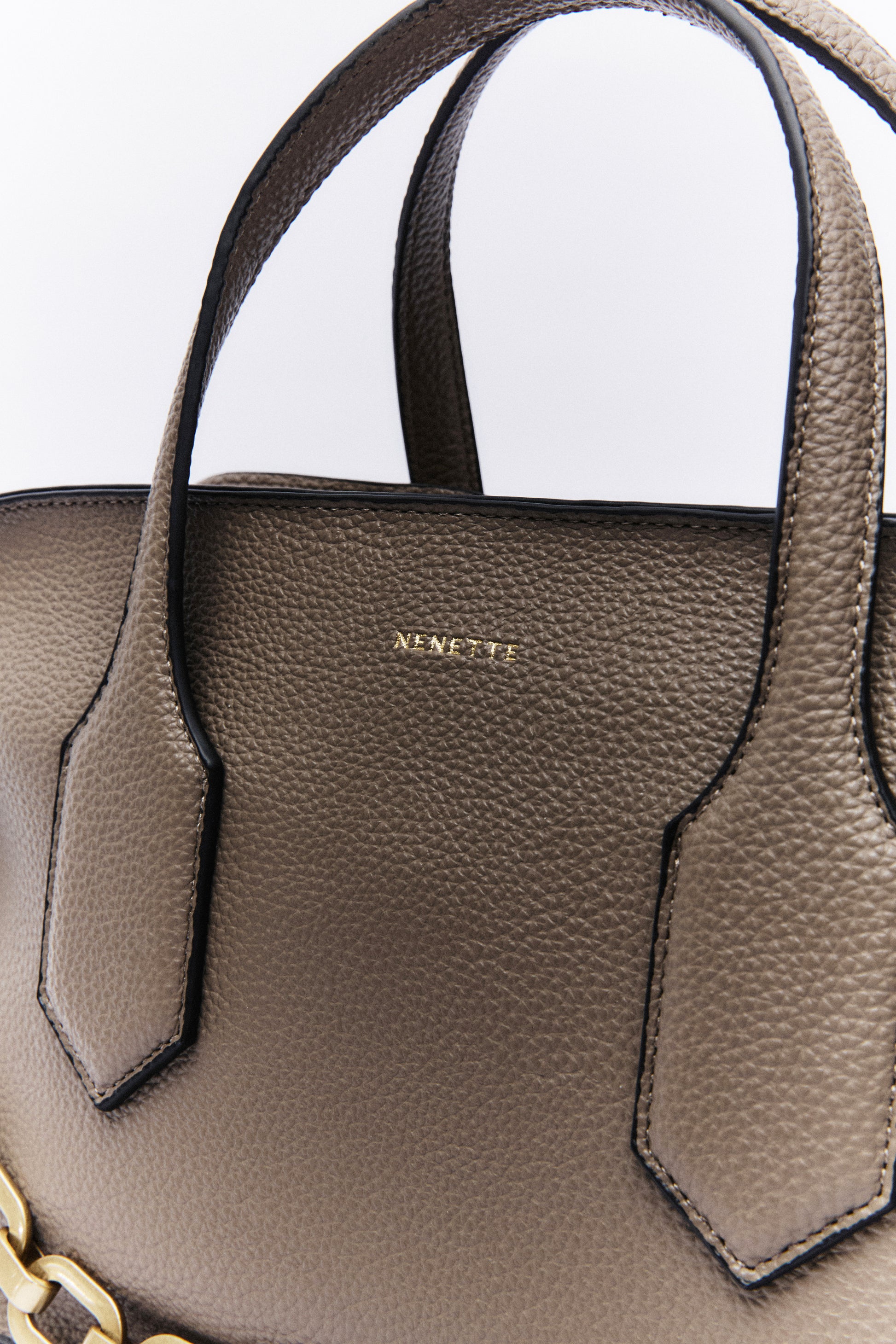 Capiente e raffinata, questa borsa in pelle dollaro si distingue per la sua linea strutturata e versatile. Pratica e funzionale, è perfetta per accompagnare la vita di tutti i giorni con un tocco elegante. Un accessorio ideale per uno stile sofisticato e contemporaneo, senza rinunciare a comodità e femminilità.