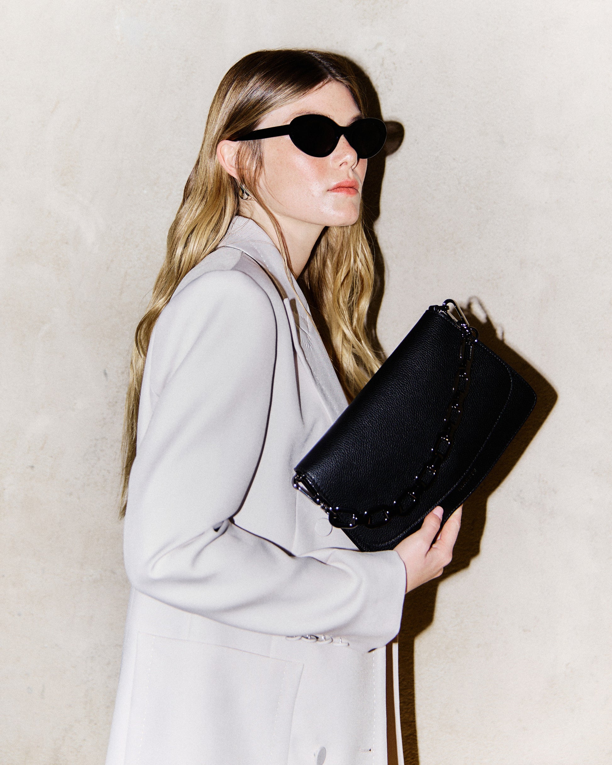 Compatta e sofisticata, questa borsa in dollaro con patta frontale si distingue per la pratica suddivisione in 3 scomparti interni, che garantiscono ordine e funzionalità. Perfetta per uno stile raffinato e contemporaneo, è l’accessorio ideale per look quotidiani e serali, aggiungendo un tocco particolare.