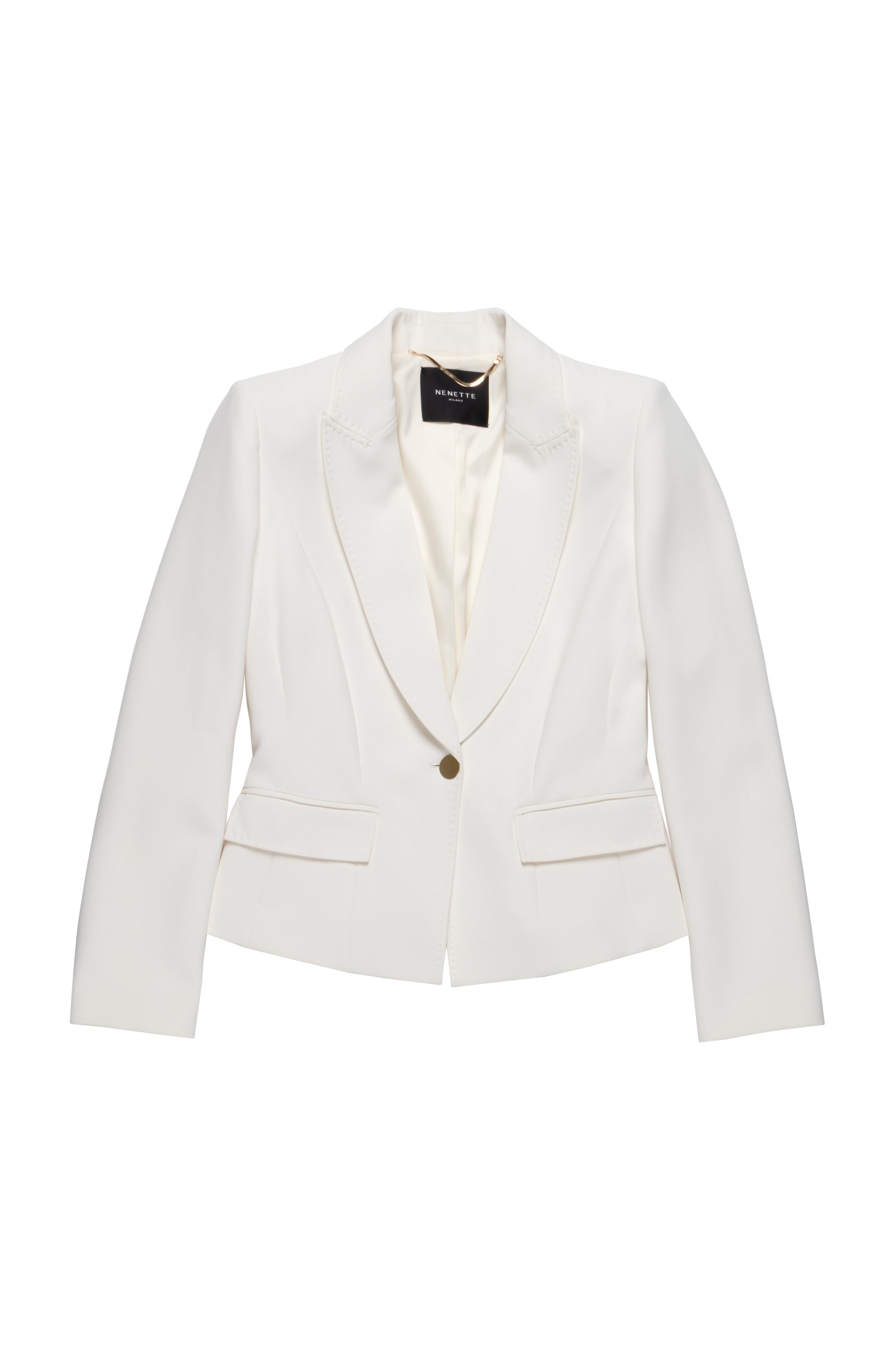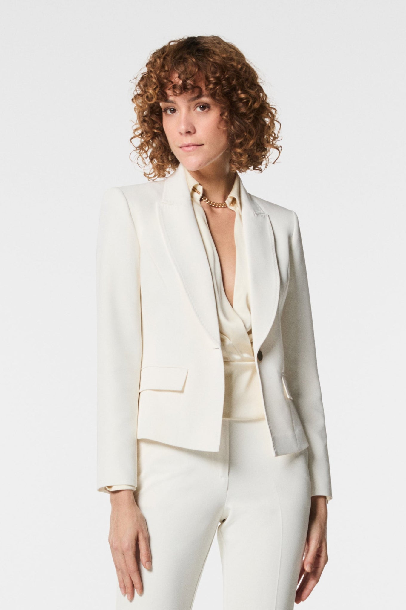 Giacca monopetto corta in cady, dal taglio essenziale e raffinato. Un capo versatile e contemporaneo, capace di valorizzare la silhouette con linee pulite e femminili. Ideale per look polished casual o per completare outfit più eleganti, dona un tocco distintivo e senza tempo.