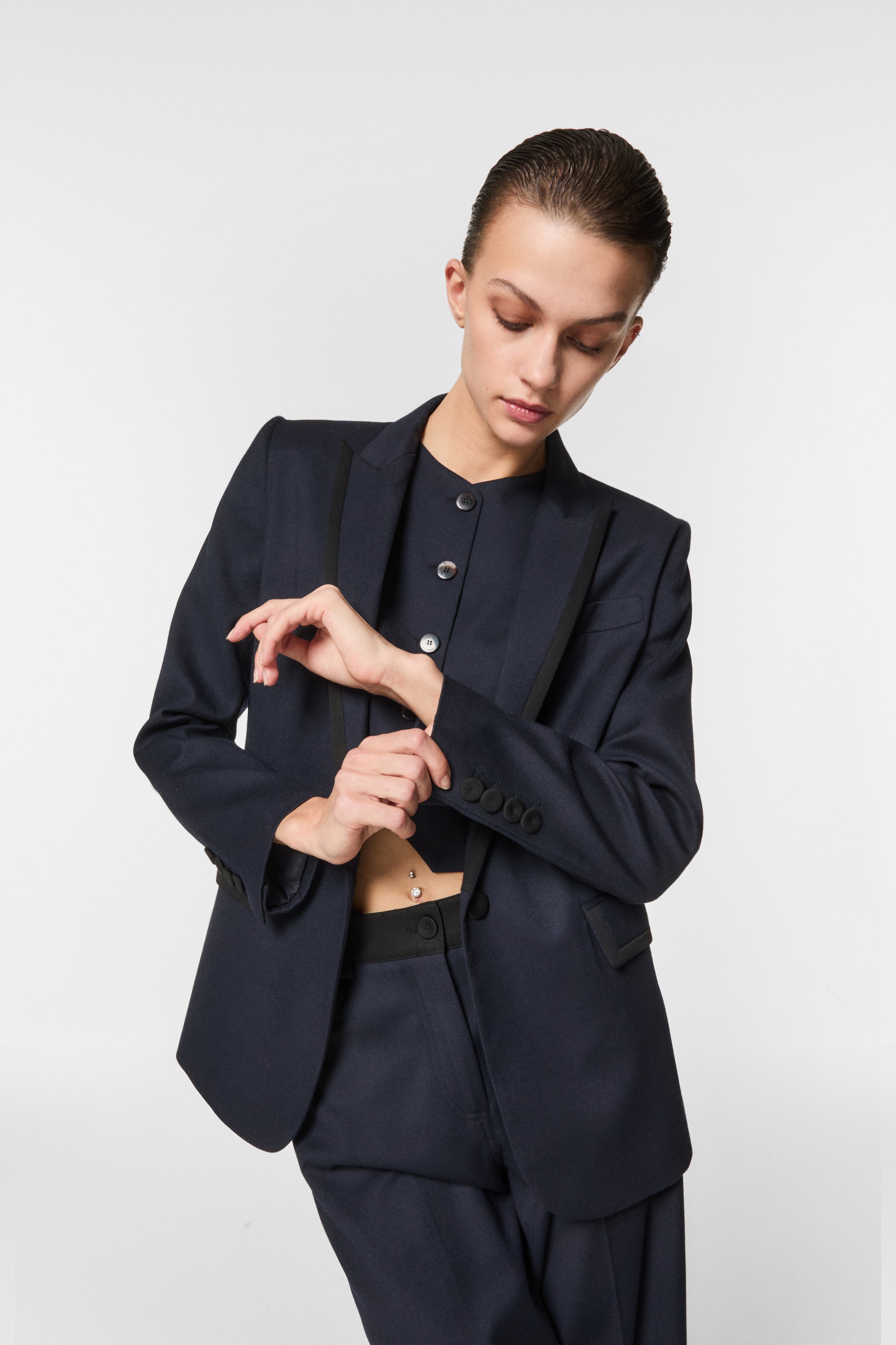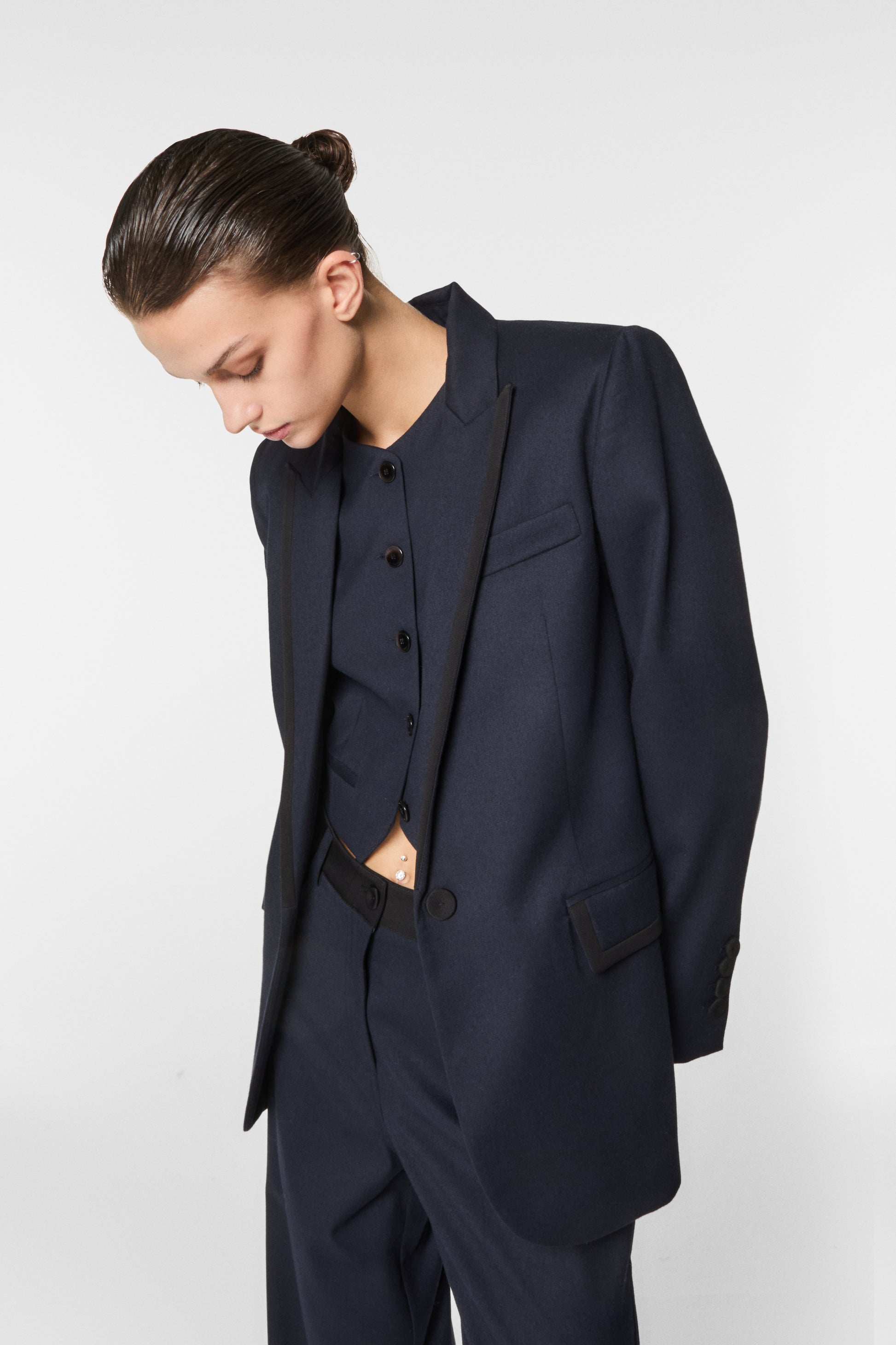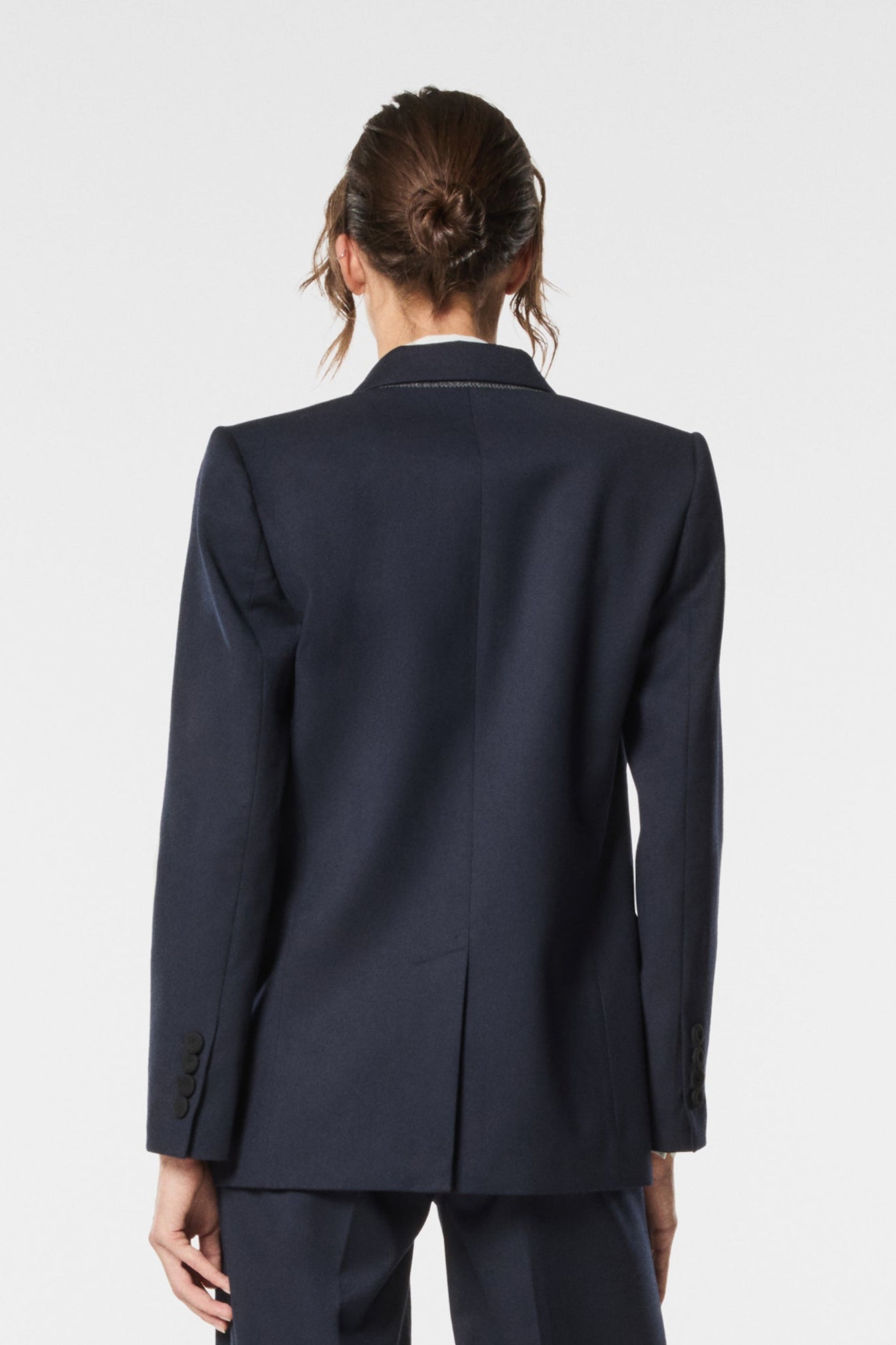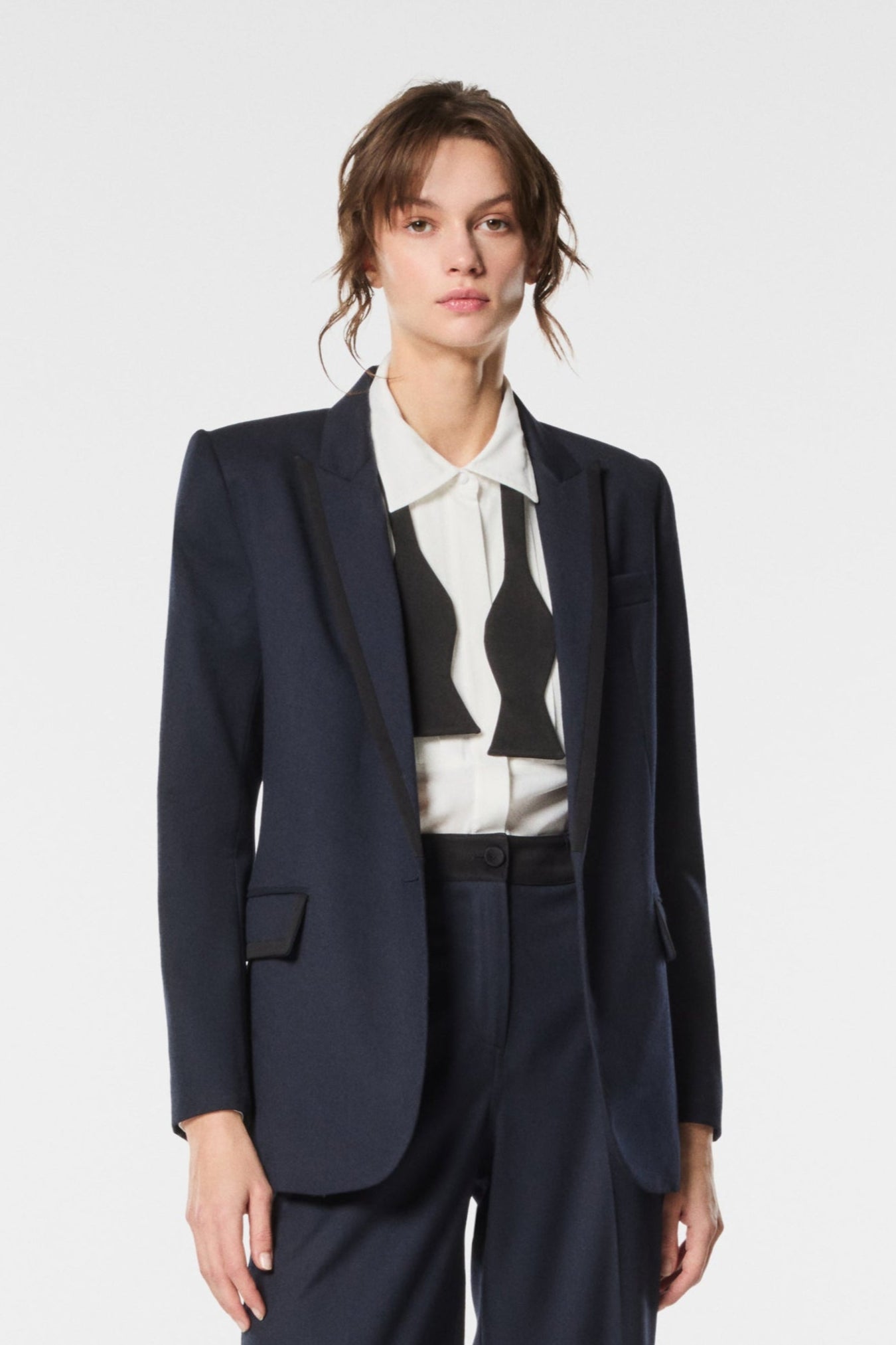 Giacca monopetto in fresco lana stretch con inserti ottoman, elegante e moderna. Il mix di materiali valorizza la linea essenziale con dettagli sofisticati. Leggera e confortevole, è ideale per look formali o casual-chic, offrendo stile e versatilità con un tocco ricercato.