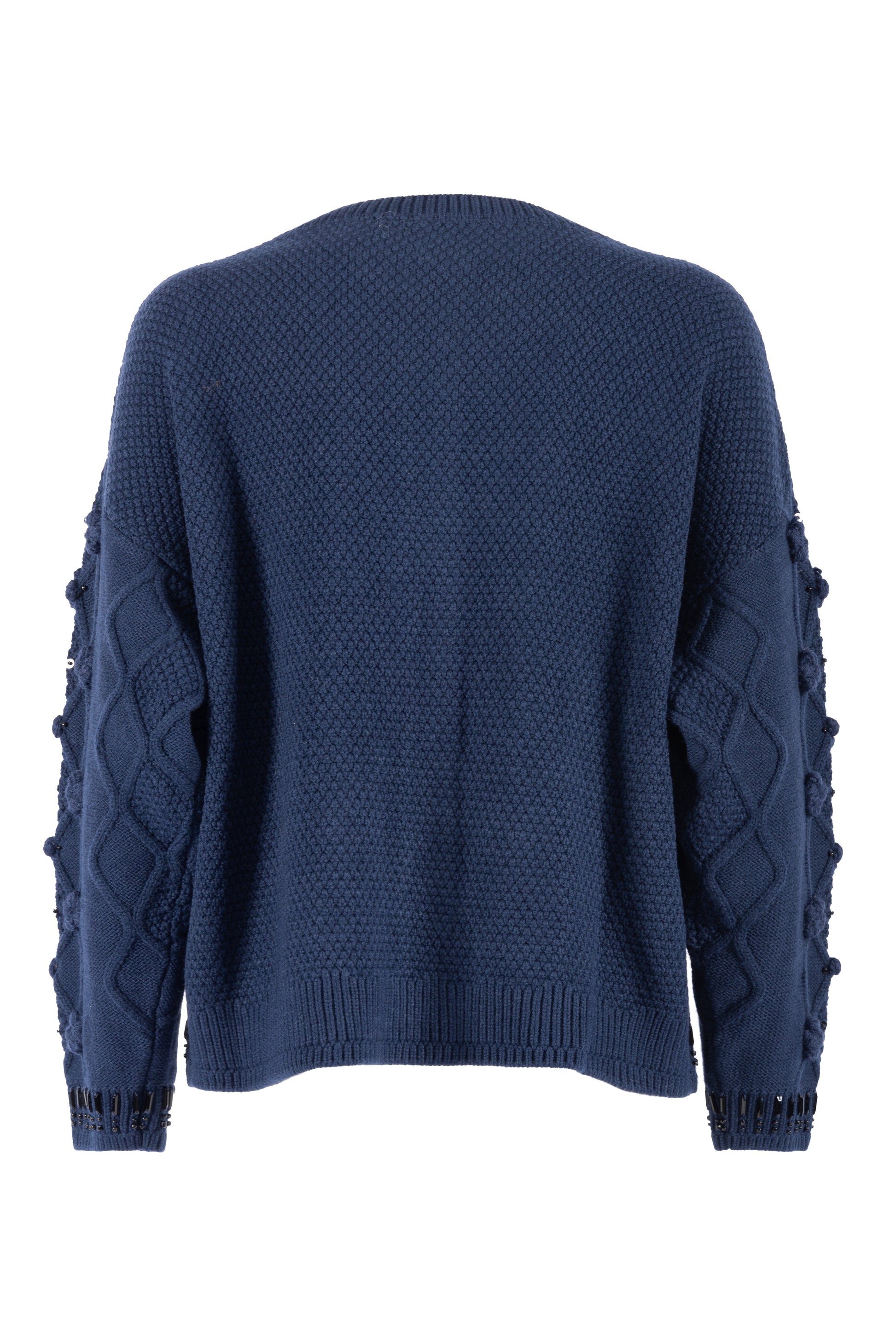 Cardigan in maglia con lavorazioni preziose e dettagli gioiello: un capo esclusivo che unisce comfort e raffinatezza. La linea morbida e il design ricercato lo rendono un capo sofisticato e distintivo, perfetto per look quotidiani dal tocco elegante. Ideale per dare carattere e luce a ogni outfit.
