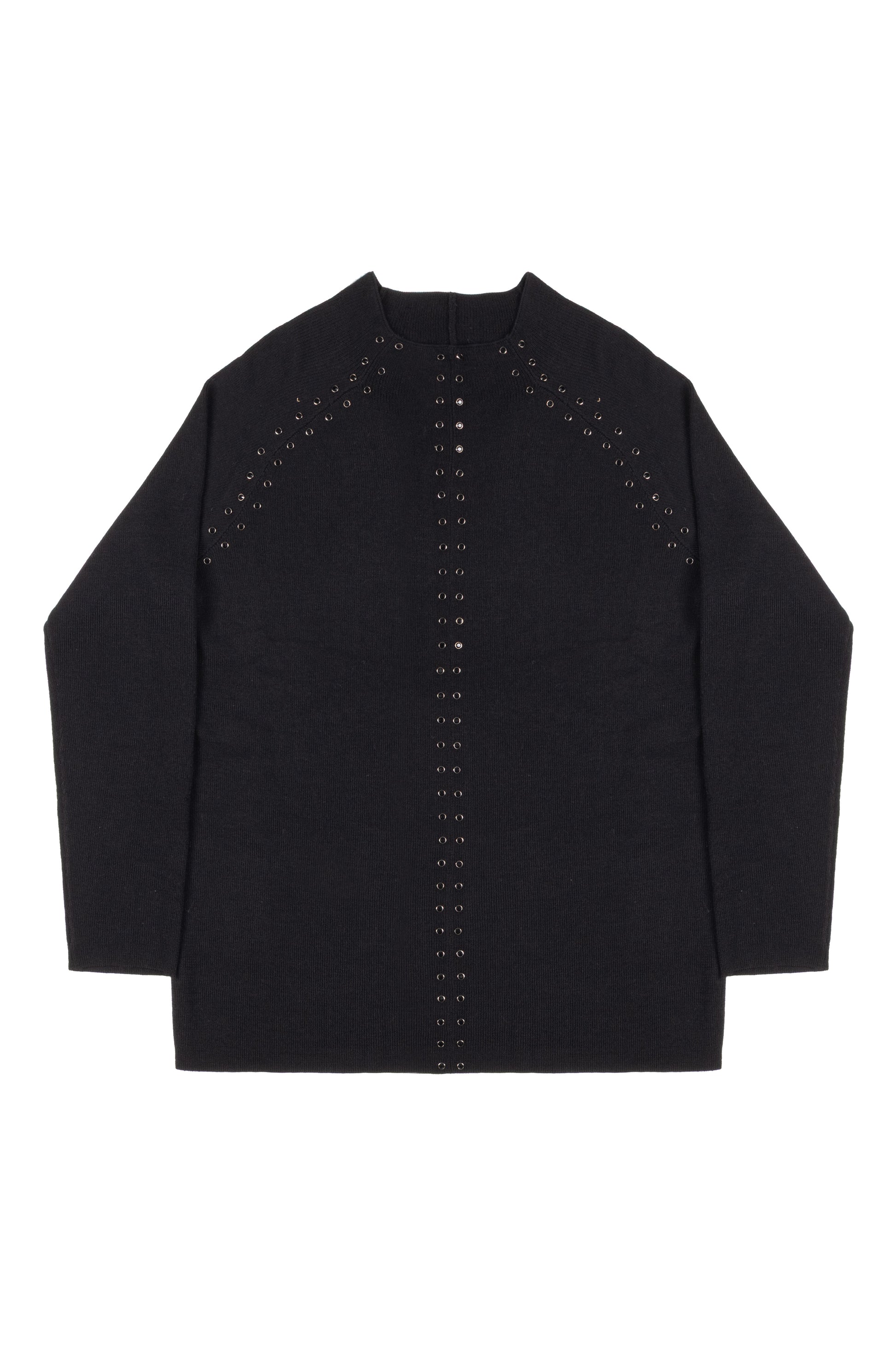 Maglia con borchie, femminile e grintosa al tempo stesso. Il dettaglio luminoso impreziosisce la linea essenziale, trasformandola in un capo must-have per look moderni e ricercati. Da indossare di giorno o di sera, per brillare con stile in ogni occasione.