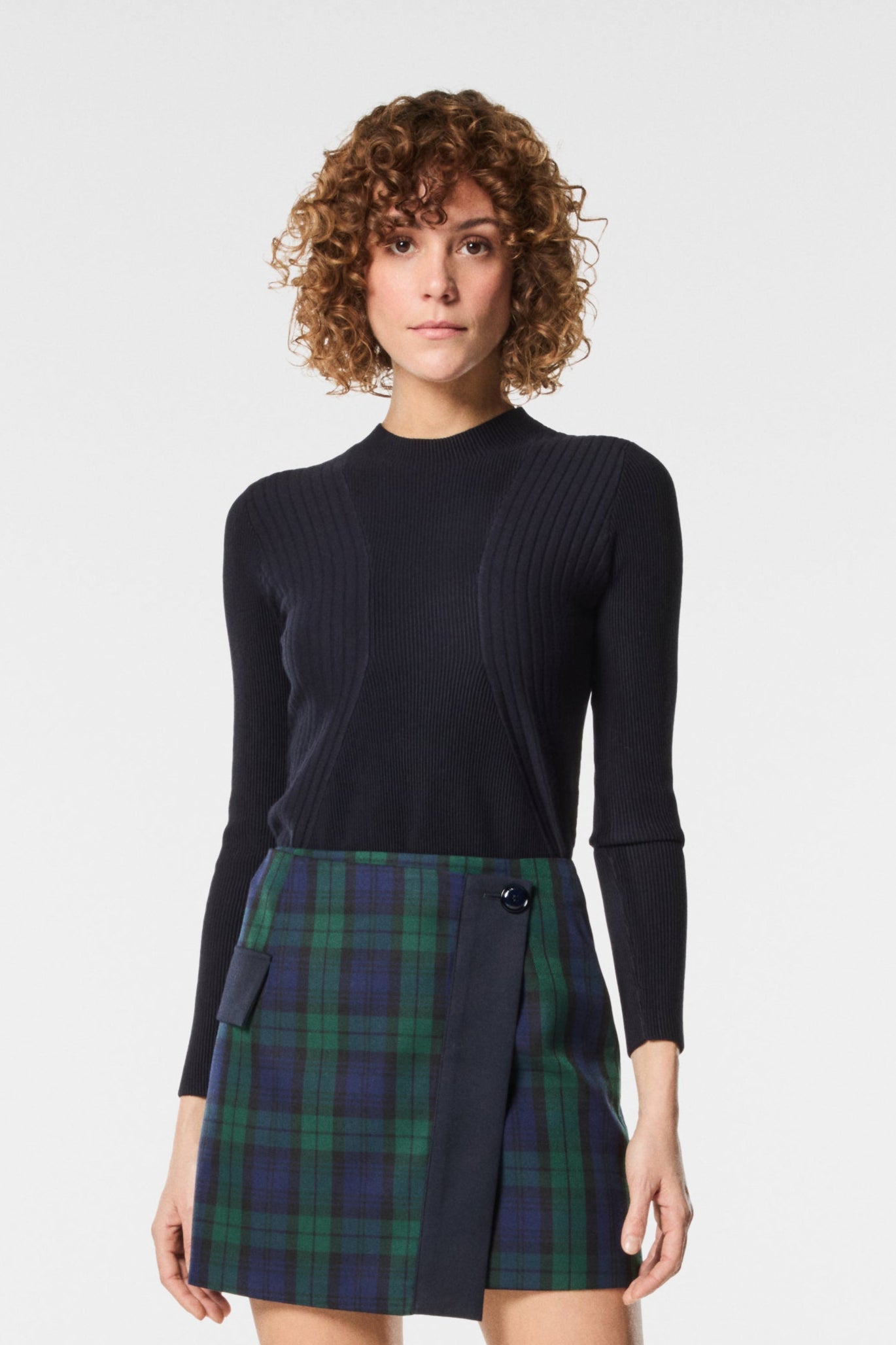 Maglia a girocollo con maniche lunghe a costine alte e basse dalla vestibilità aderente. Il design minimal e raffinato la rende versatile, ideale per abbinamenti casual o eleganti.