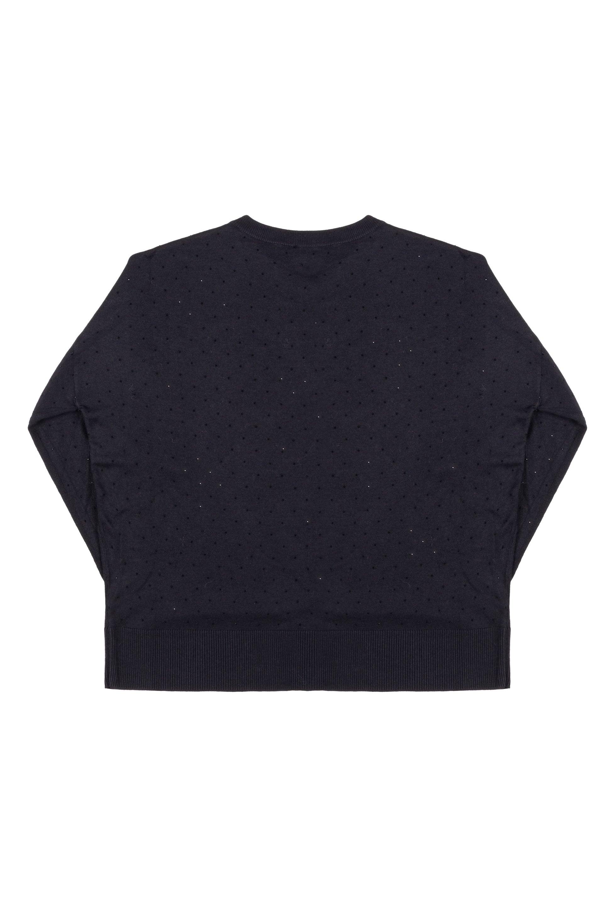 Maglia girocollo interamente ricoperta di strass, scintillante e sofisticata. Un capo glamour che dona luce e stile, perfetto per rendere speciale ogni look.