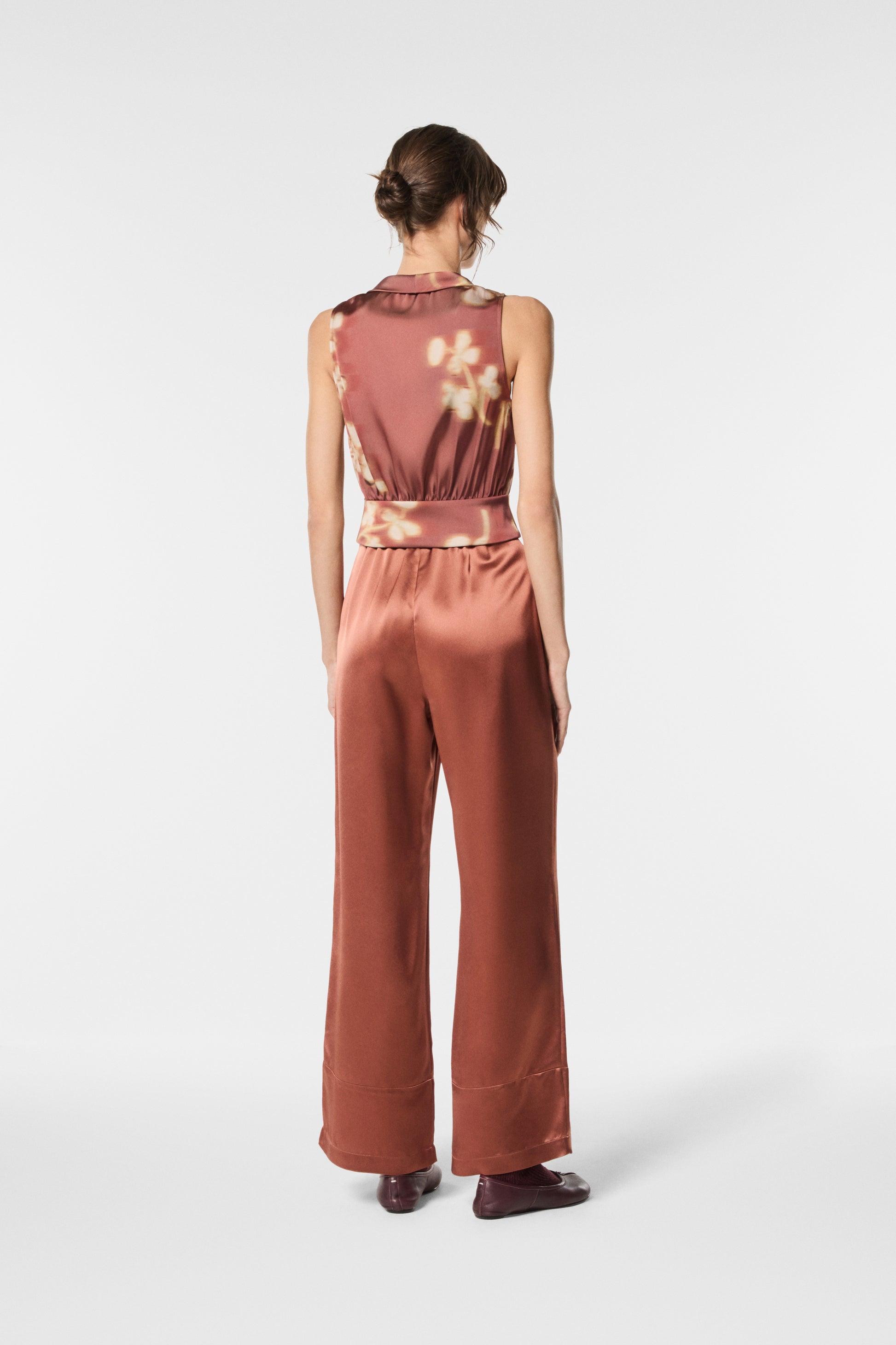 Pantalone a gamba dritta in raso acetato, fluido e luminoso. La linea essenziale incontra l’eleganza del tessuto leggermente lucido, per un look femminile e raffinato. Perfetto per occasioni quotidiane o serali, dona un tocco sofisticato con il massimo comfort.