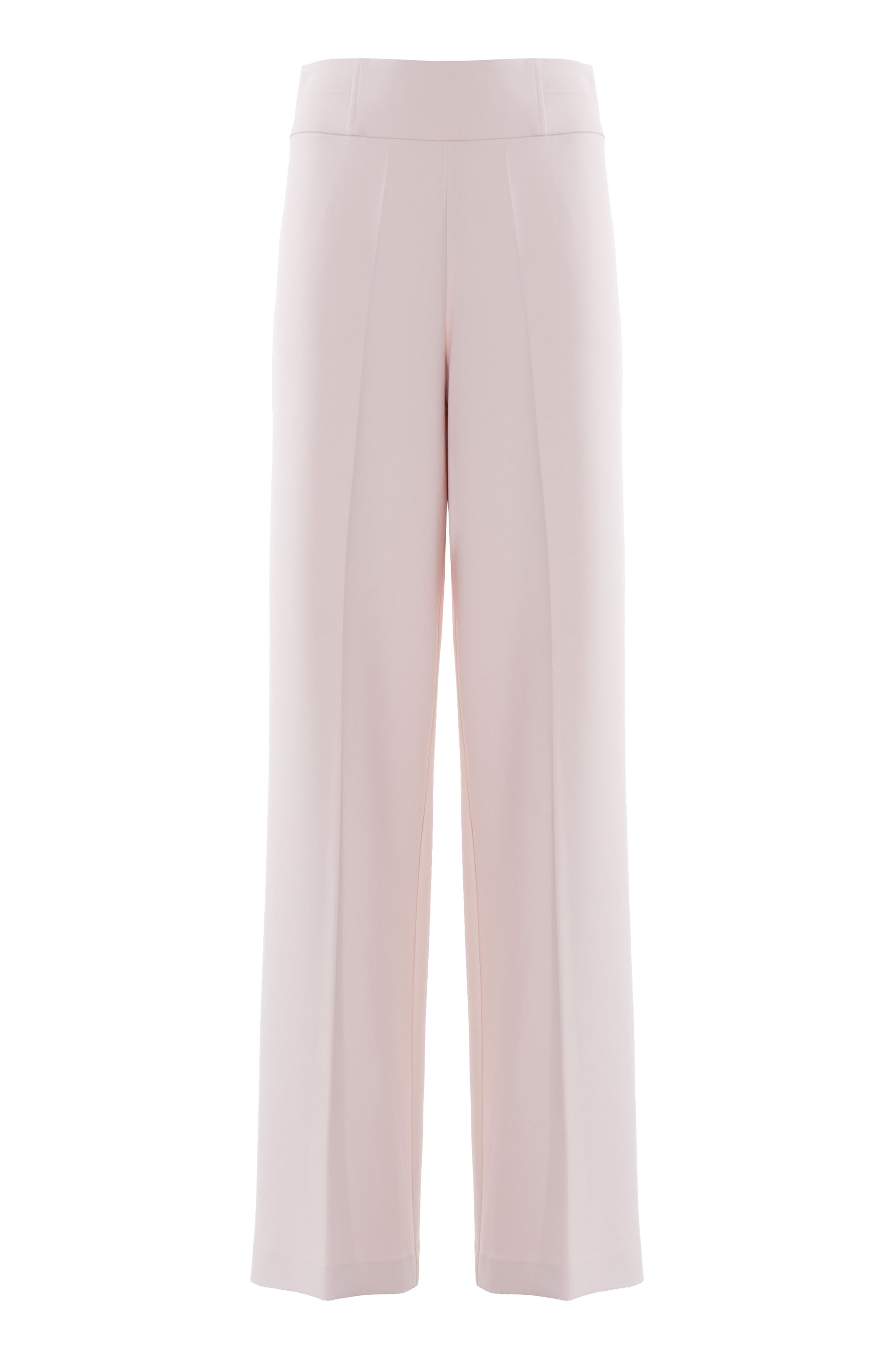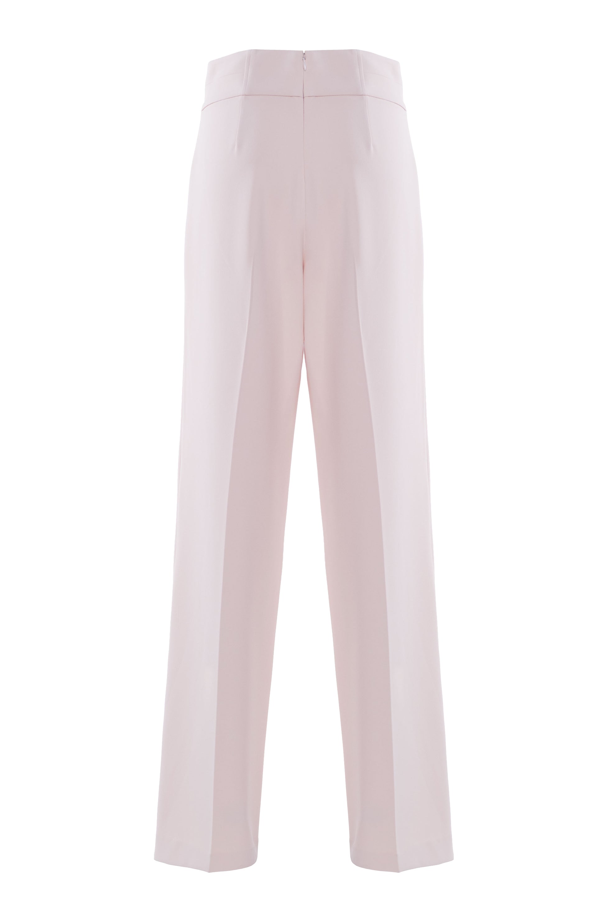 Elegante pantalone dalla linea a gamba larga e dal taglio sartoriale fluido. Il design presenta una vita alta definita con chiusura a scomparsa sul retro, che assicura una silhouette pulita e raffinata. Impreziosito da pieghe stirate centrali che slanciano la figura e pinces posteriori per un fit impeccabile. Ideale per look formali o eventi speciali.