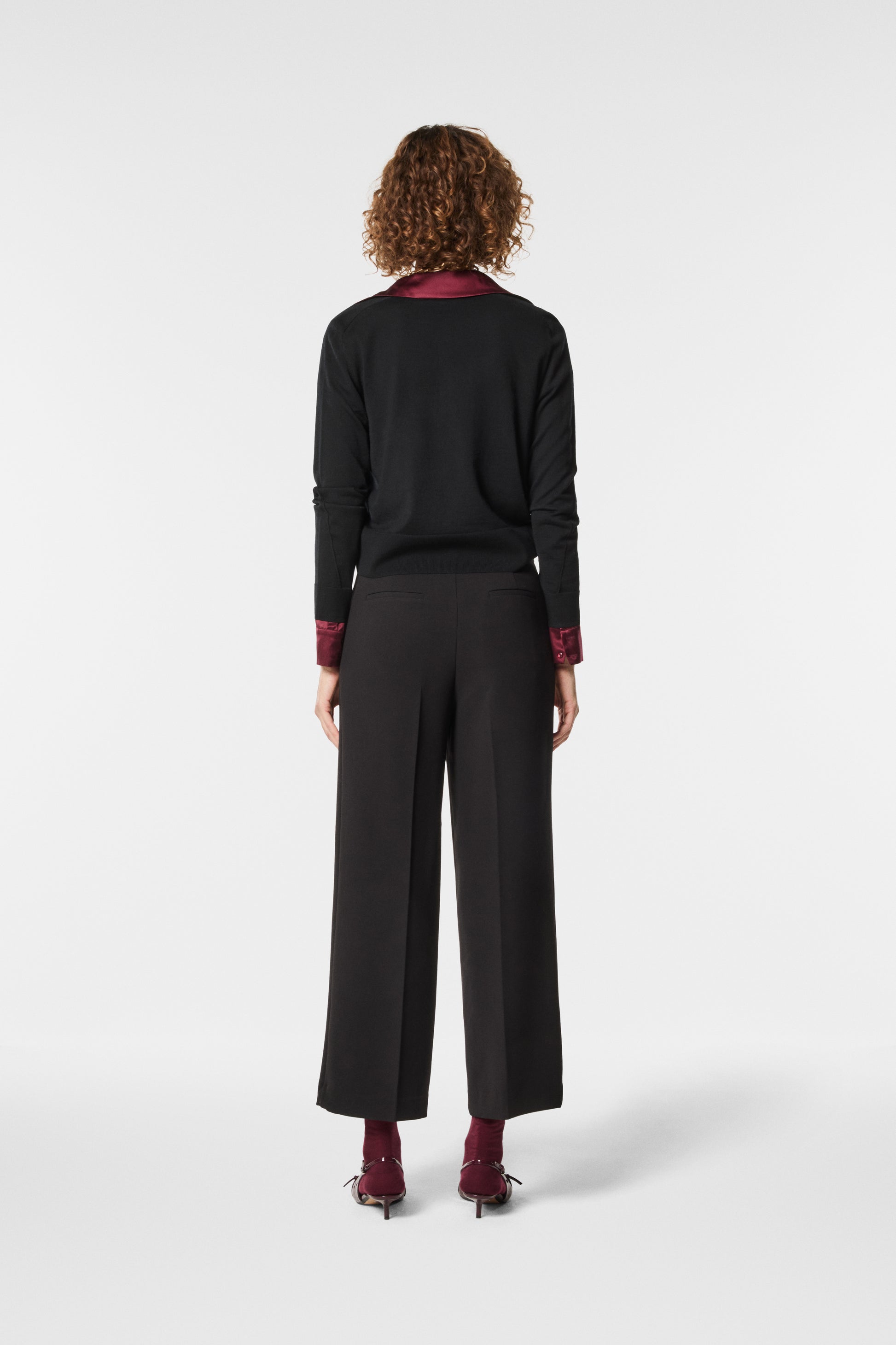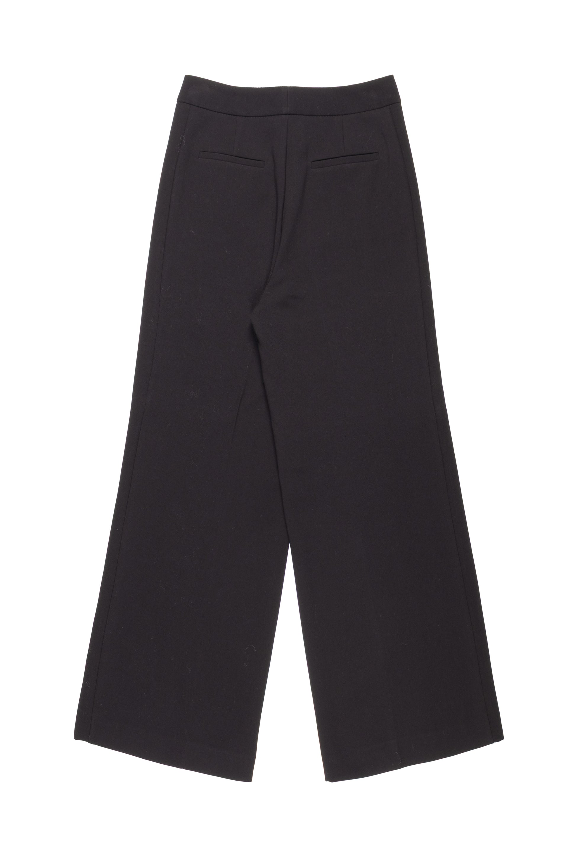 Pantalone a gamba larga in doppio crepe, dalla linea fluida e sofisticata. Il tessuto strutturato assicura caduta perfetta e comfort, valorizzando la silhouette con eleganza. Un capo versatile e senza tempo, ideale per look formali o outfit quotidiani dal carattere raffinato.