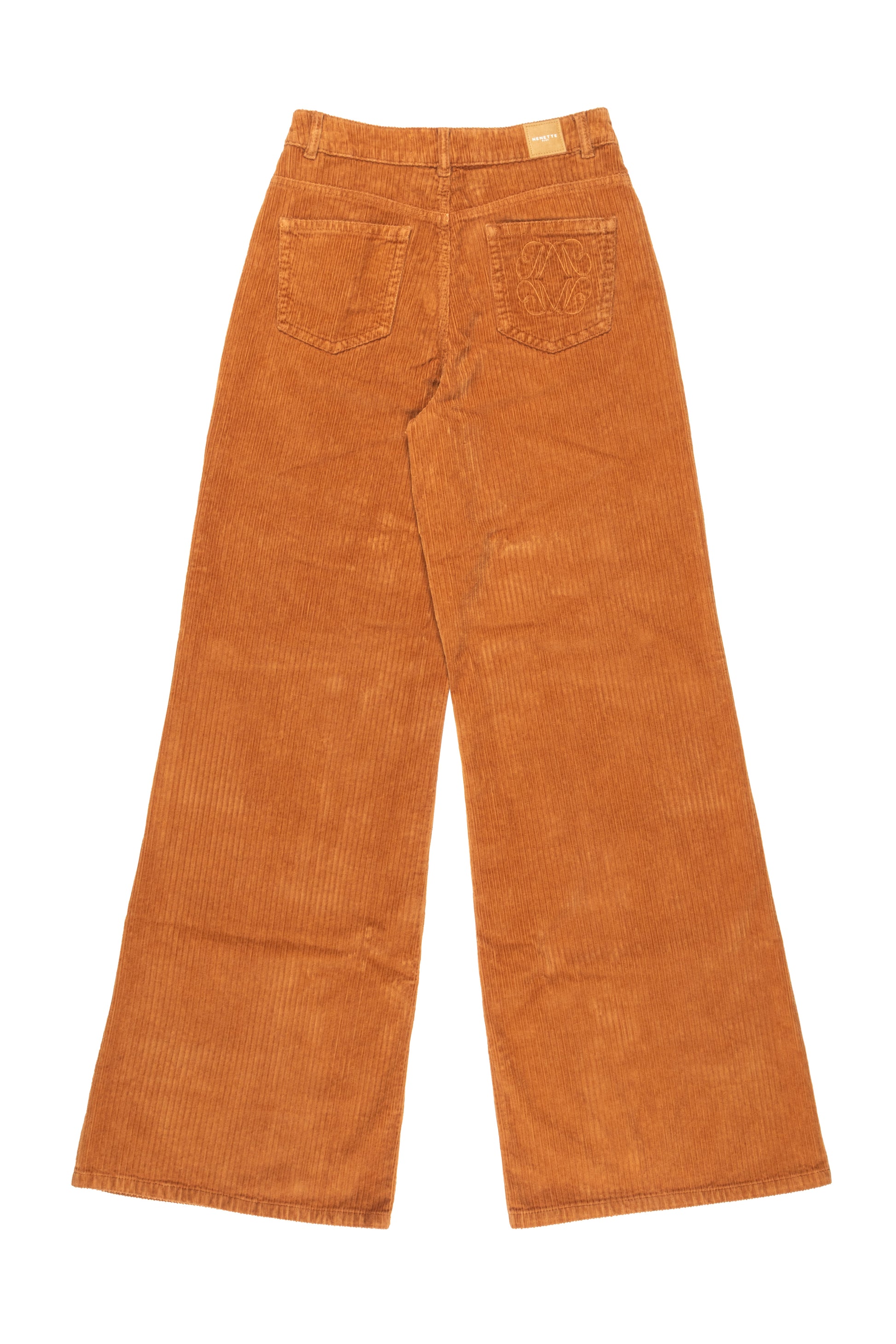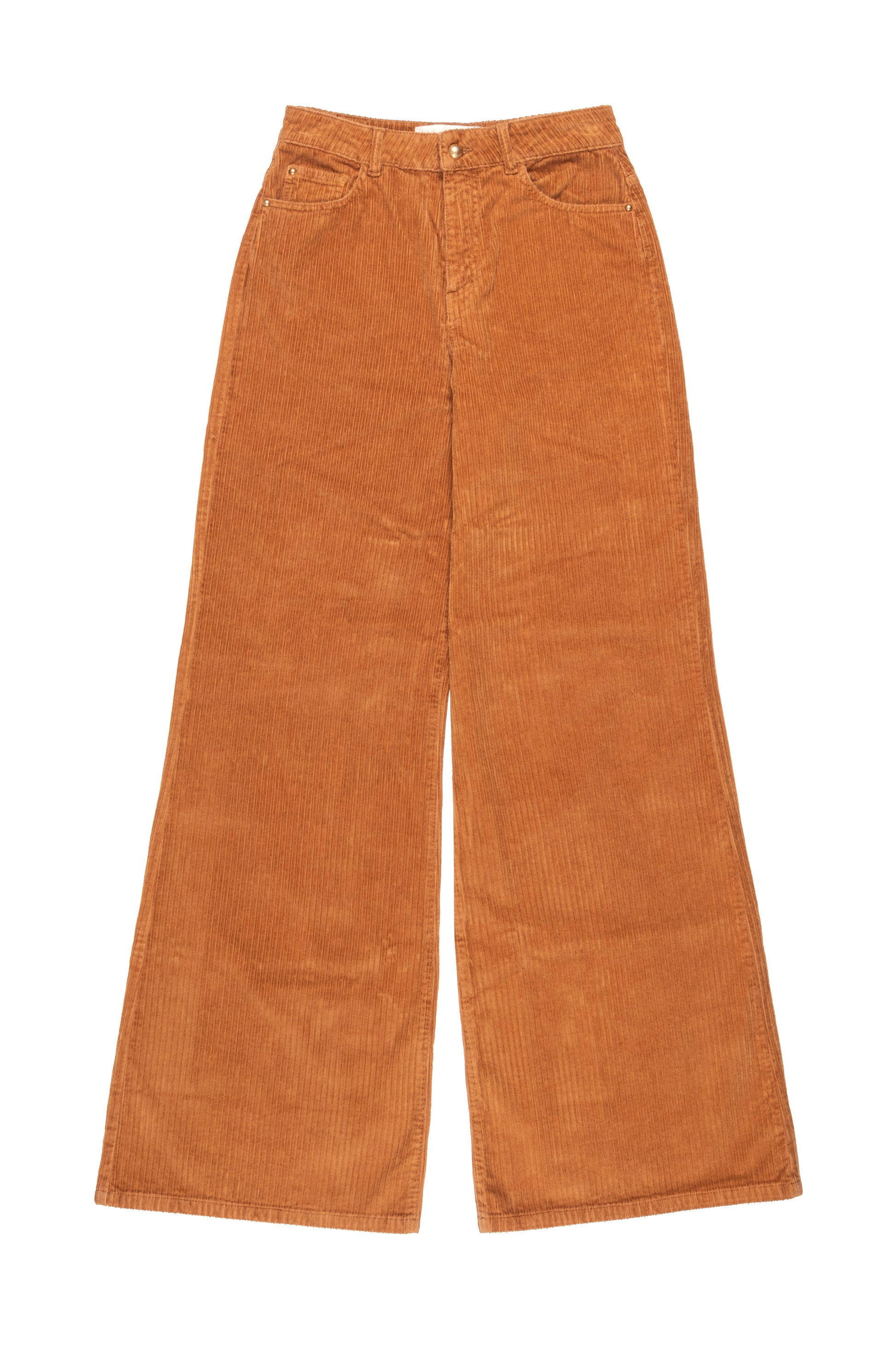 Pantalone a gamba larga in velluto a coste, morbido e avvolgente. La vita alta e la linea ampia valorizzano la silhouette con eleganza. Un capo che unisce comfort e stile retrò in una proposta versatile e raffinata.