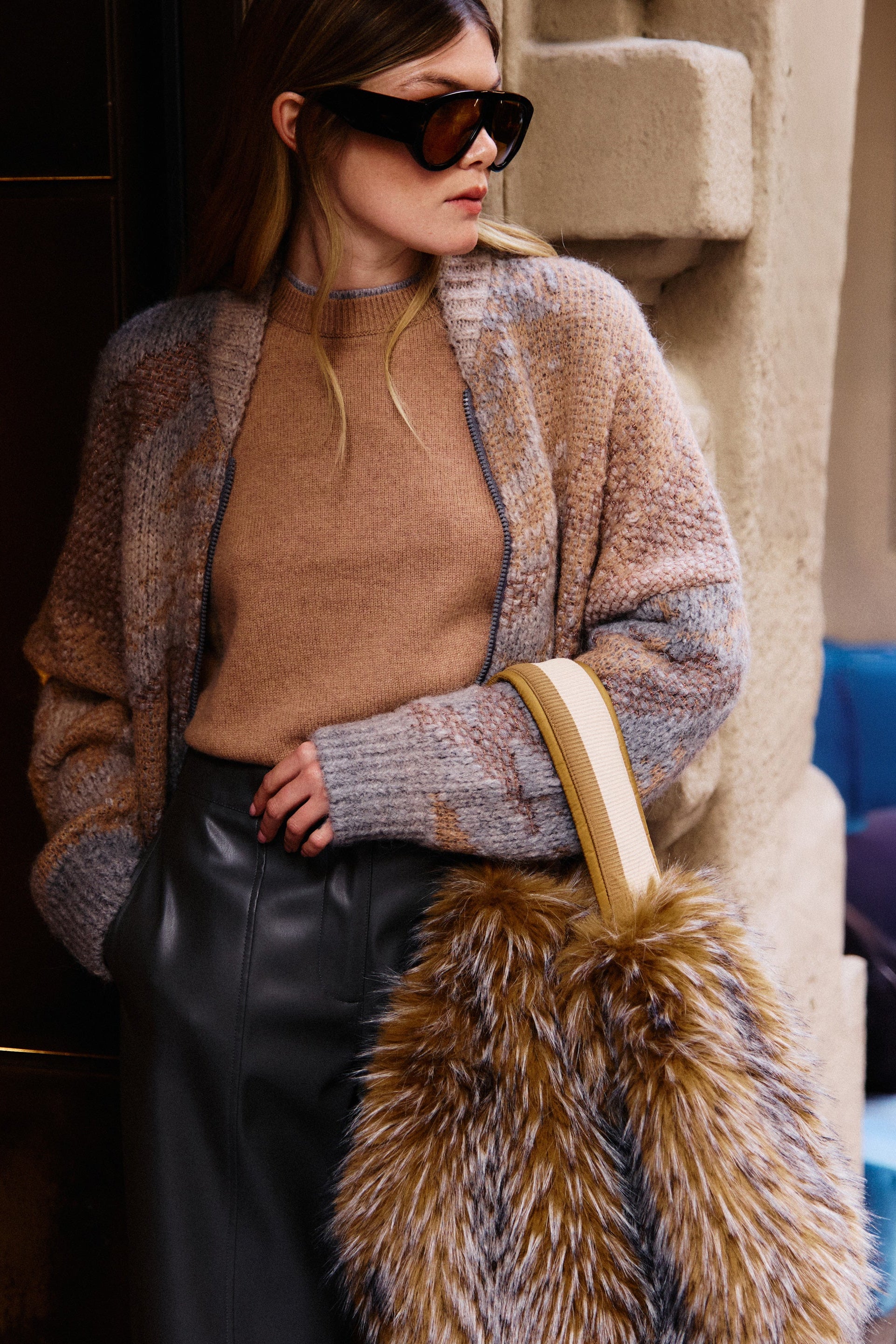 Borsa con manico in maglia, realizzata in Ecomurmasky, leggera e resistente. La texture particolare conferisce un tocco sofisticato e moderno, mentre la forma pratica ne garantisce versatilità d’uso. Perfetta per completare look casual raffinati o per aggiungere un dettaglio distintivo a outfit quotidiani con stile.