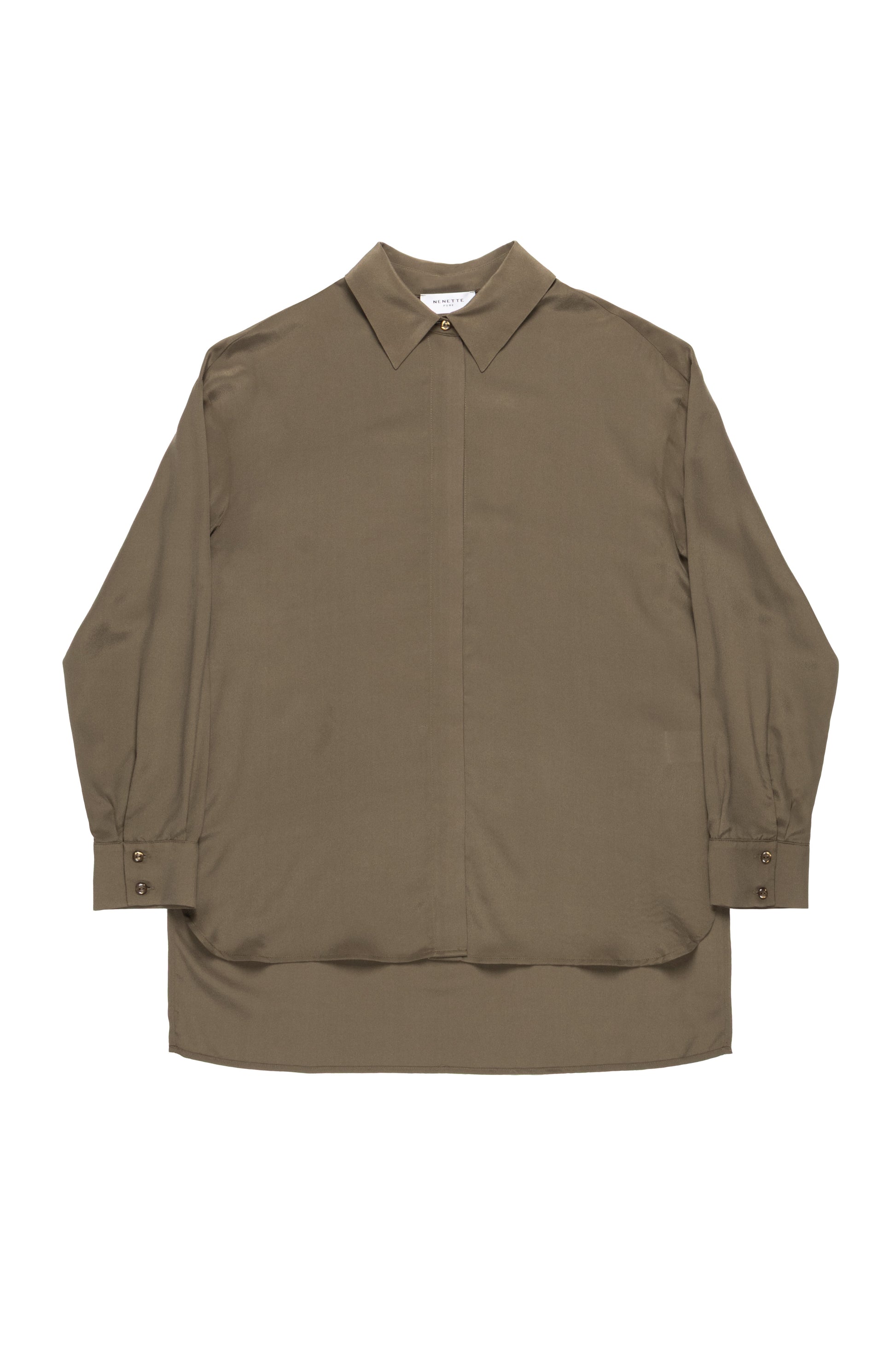 Camicia over in seta, leggera e fluida. Linea morbida e raffinata, perfetta per un’eleganza disinvolta. Il tessuto pregiato dona luminosità e movimento, rendendola ideale per look sofisticati e versatili, da giorno o da sera.