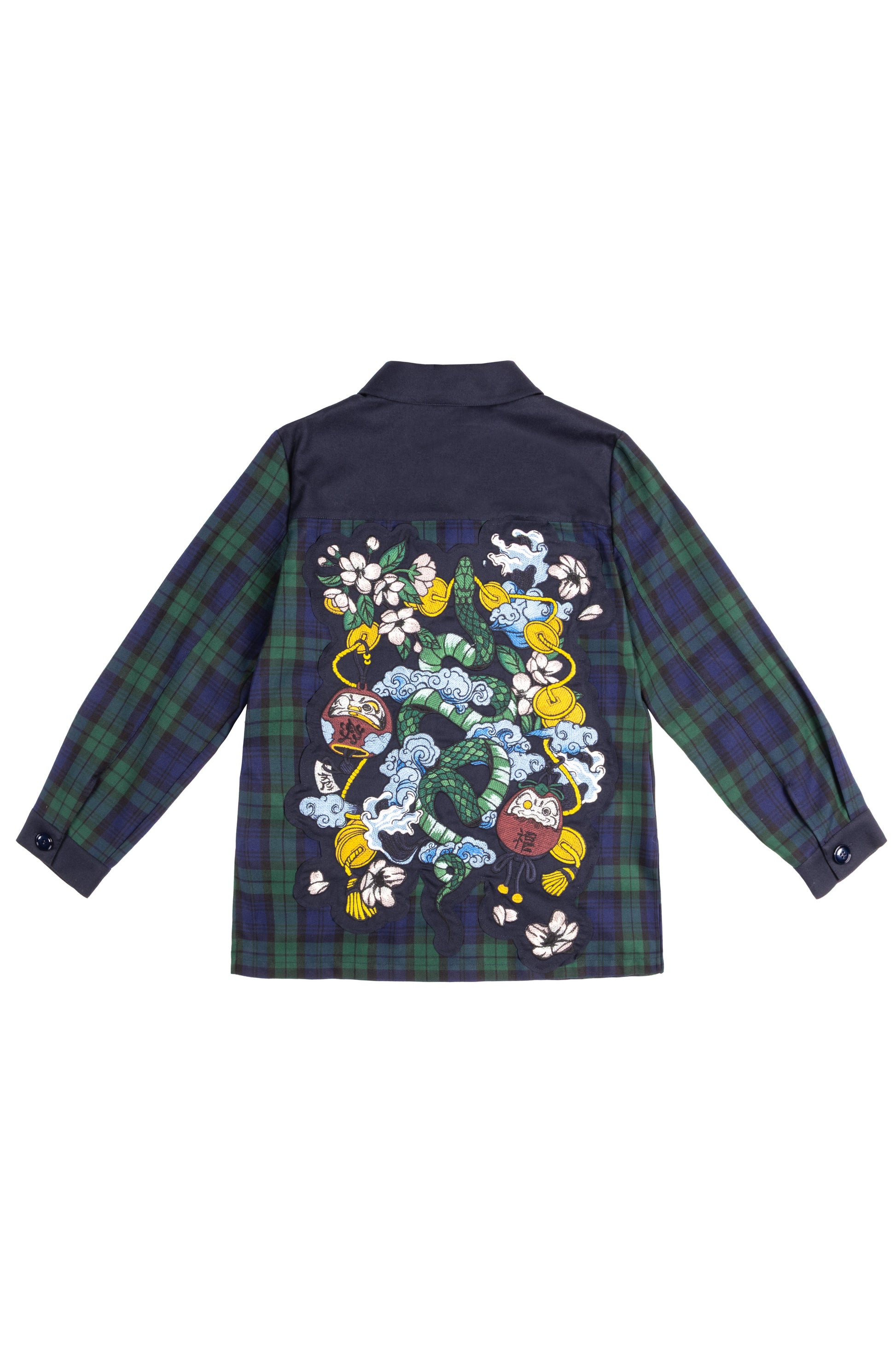 Field jacket con ricamo sulla schiena, realizzata in tartan e fresco lana. Linea strutturata e stile utility rivisitato con dettagli sartoriali. Il ricamo aggiunge un tocco originale e ricercato, rendendo il capo ideale per look decisi e contemporanei con un’eleganza disinvolta.