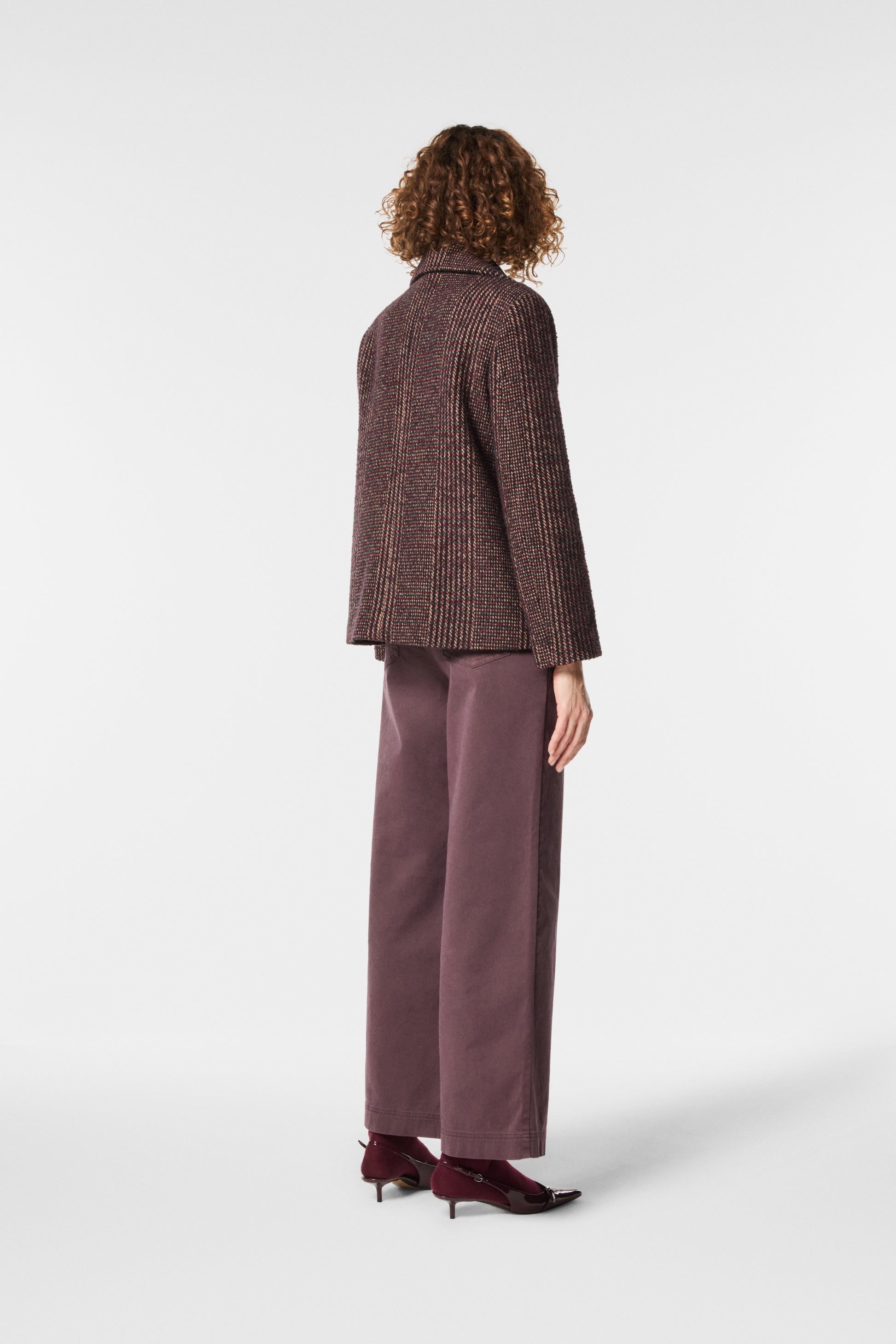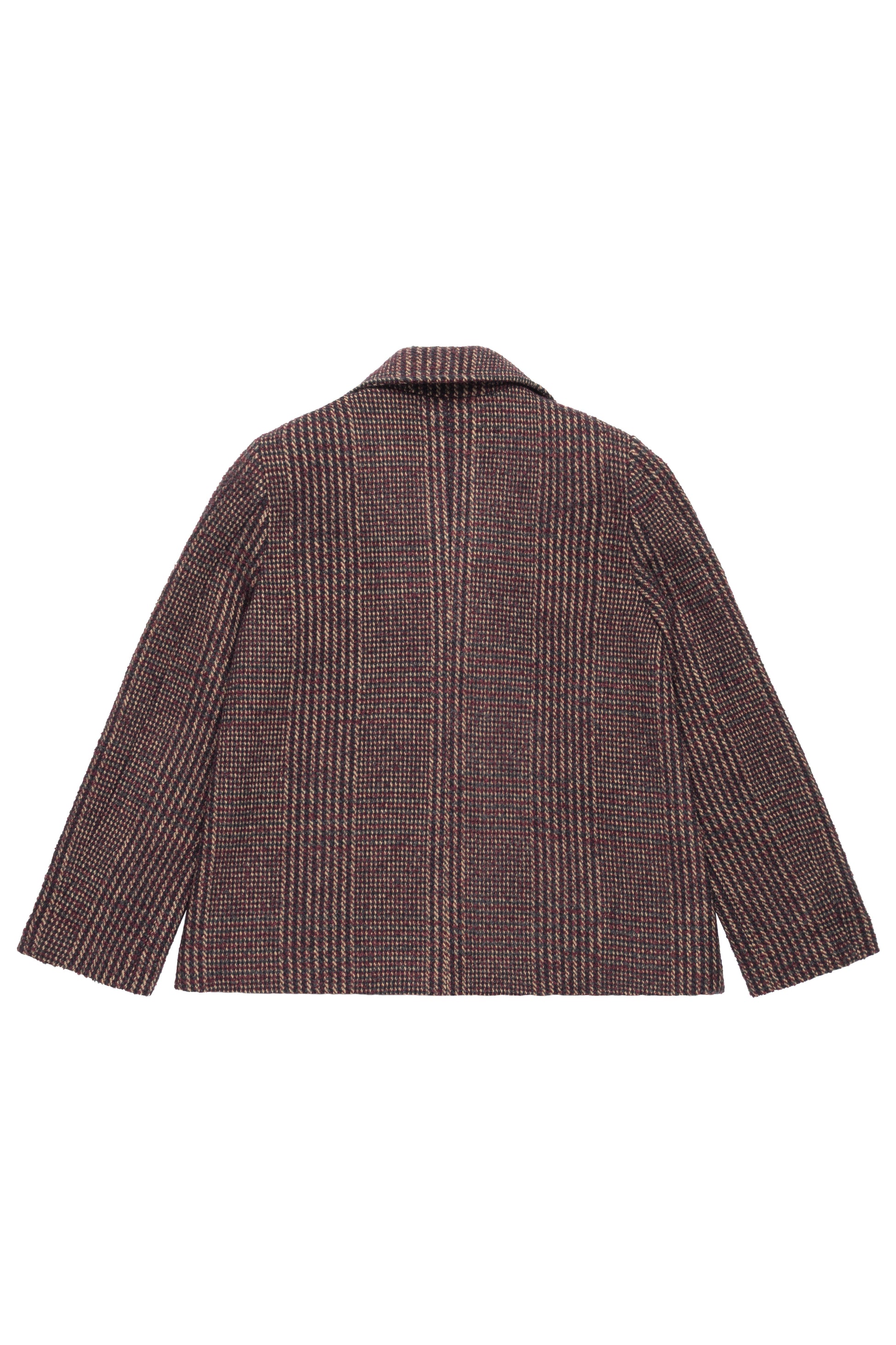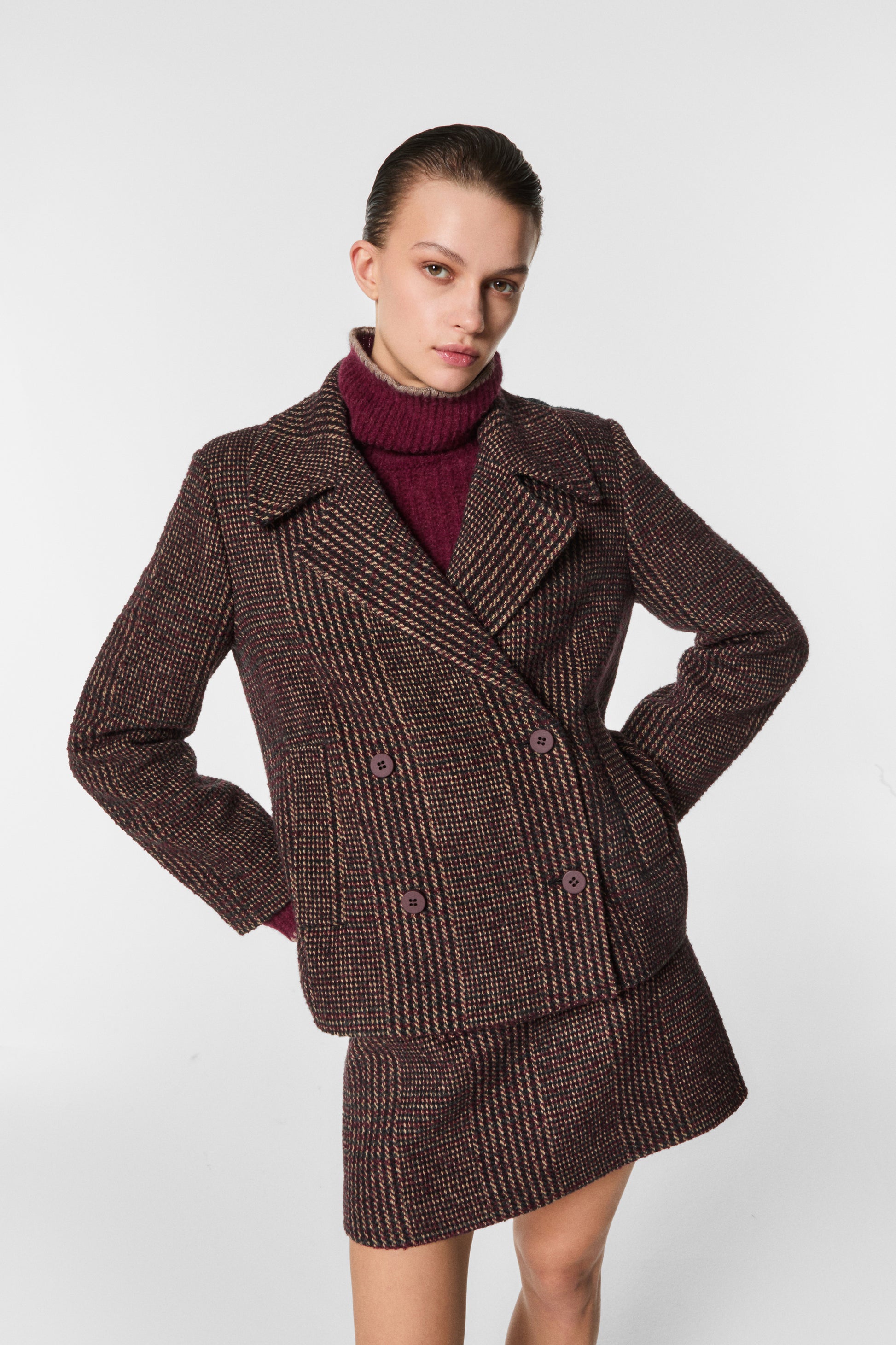 Peacoat in panno di lana con raffinata fantasia maschile, dal taglio classico e avvolgente. Elegante e versatile, combina comfort e stile senza tempo, ideale per look elegante ma comodo o abbinamenti più formali, aggiungendo un dettaglio distintivo e sofisticato agli outfit invernali.