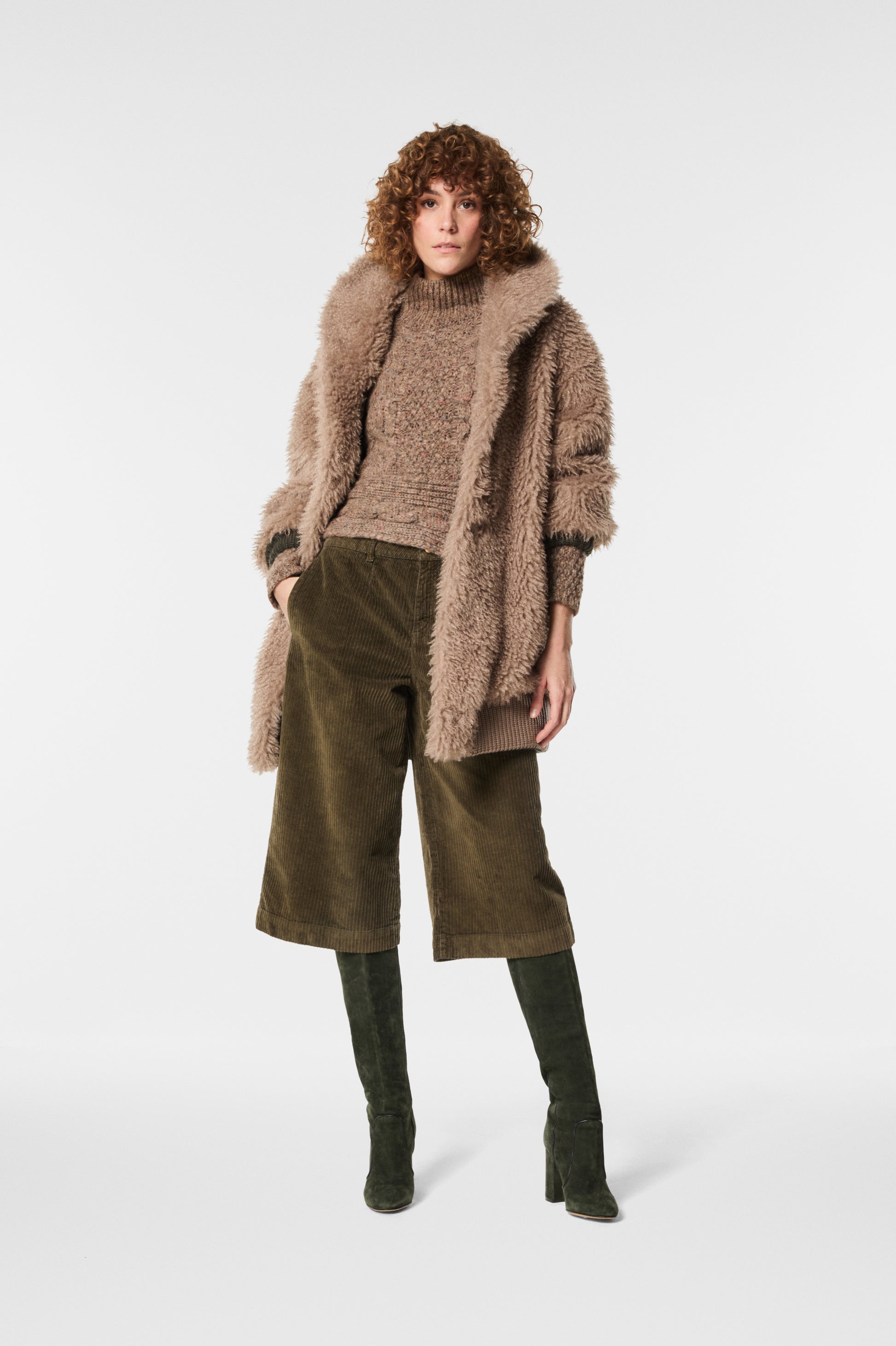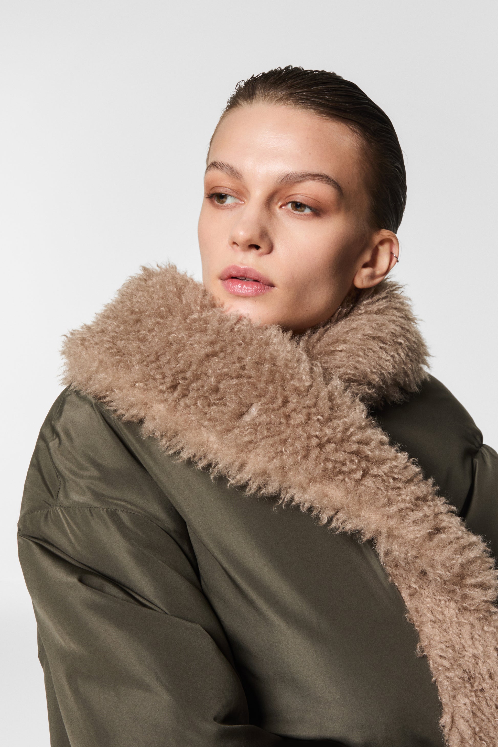 Un capo versatile e contemporaneo, perfetto per look casual-chic. Da un lato nylon tecnico per un effetto moderno e leggero, dall’altro ecopelliccia curly per calore e stile. Reversibile e pratico, trasforma ogni outfit con un tocco sofisticato e confortevole, ideale da abbinare a pantaloni o gonne.