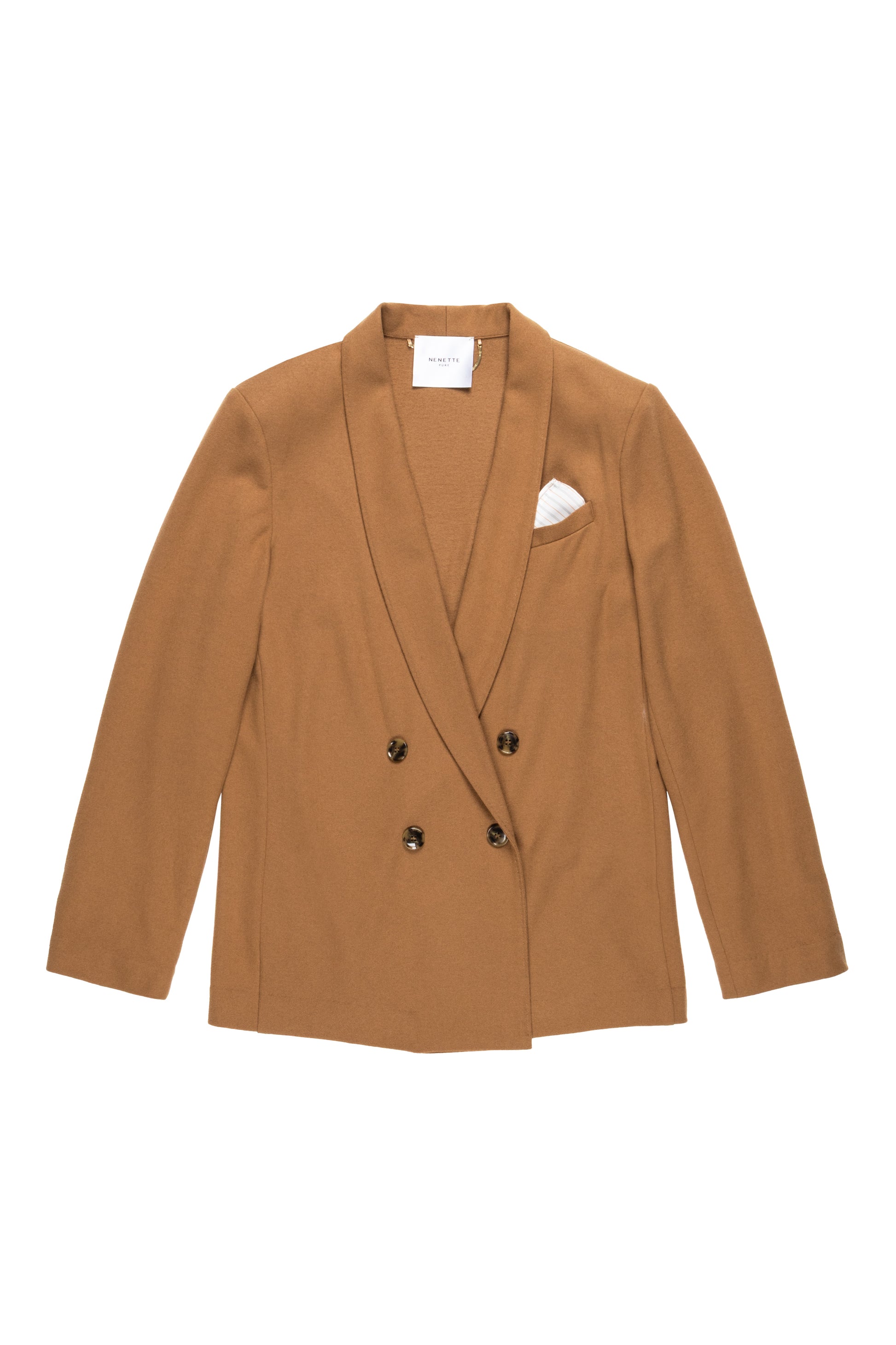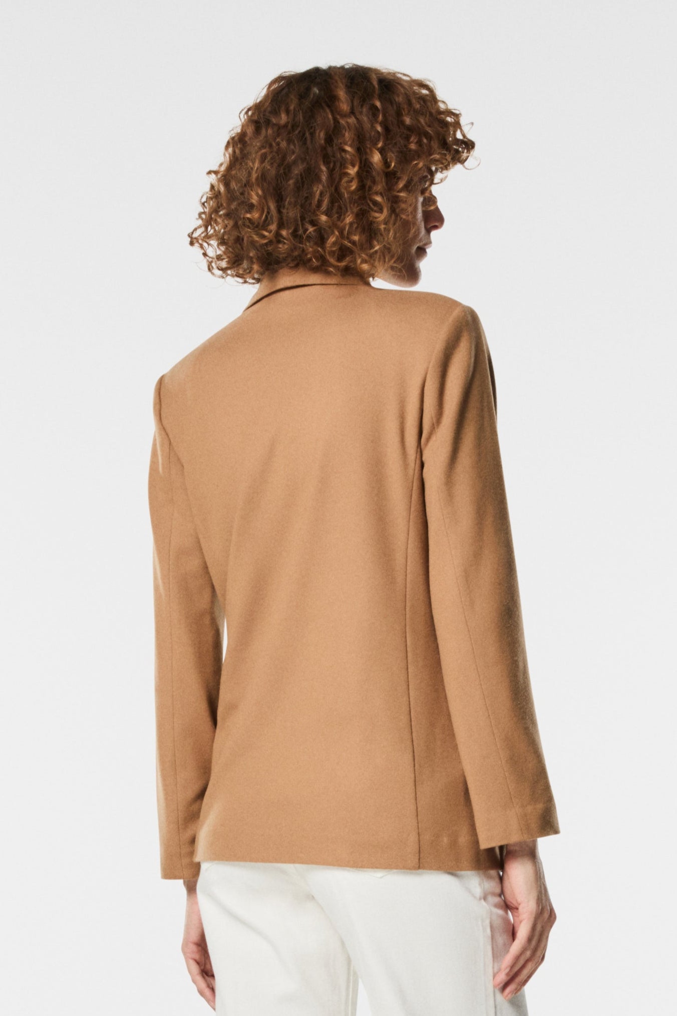 Giacca doppiopetto in jersey di lana, morbida e strutturata al tempo stesso. Il design classico è rivisitato in chiave contemporanea grazie al tessuto flessibile e confortevole. Ideale per look formali o più rilassati, unisce eleganza e praticità con uno stile sobrio e raffinato.
