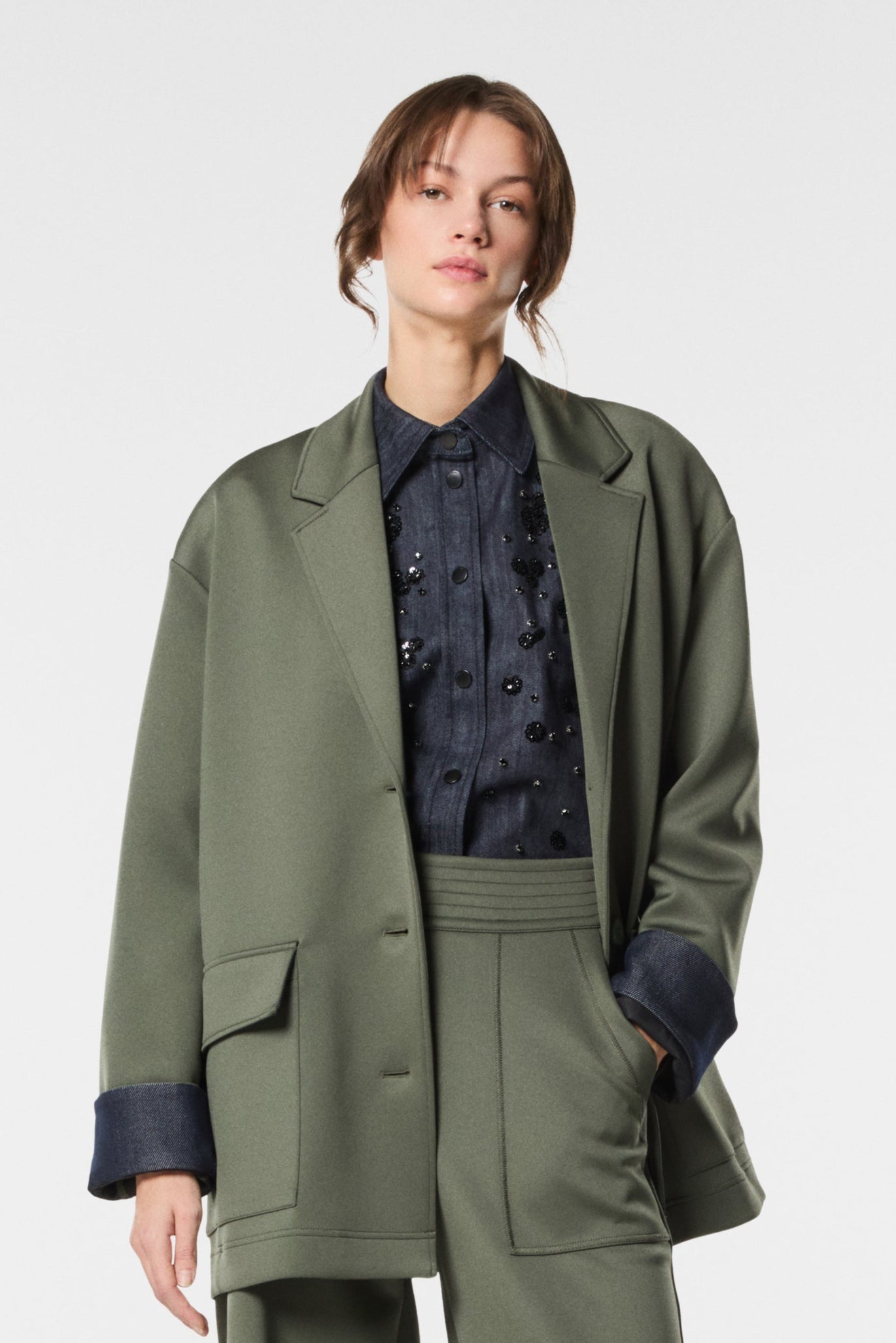 La modella è alta 177 cm e indossa una taglia 40.