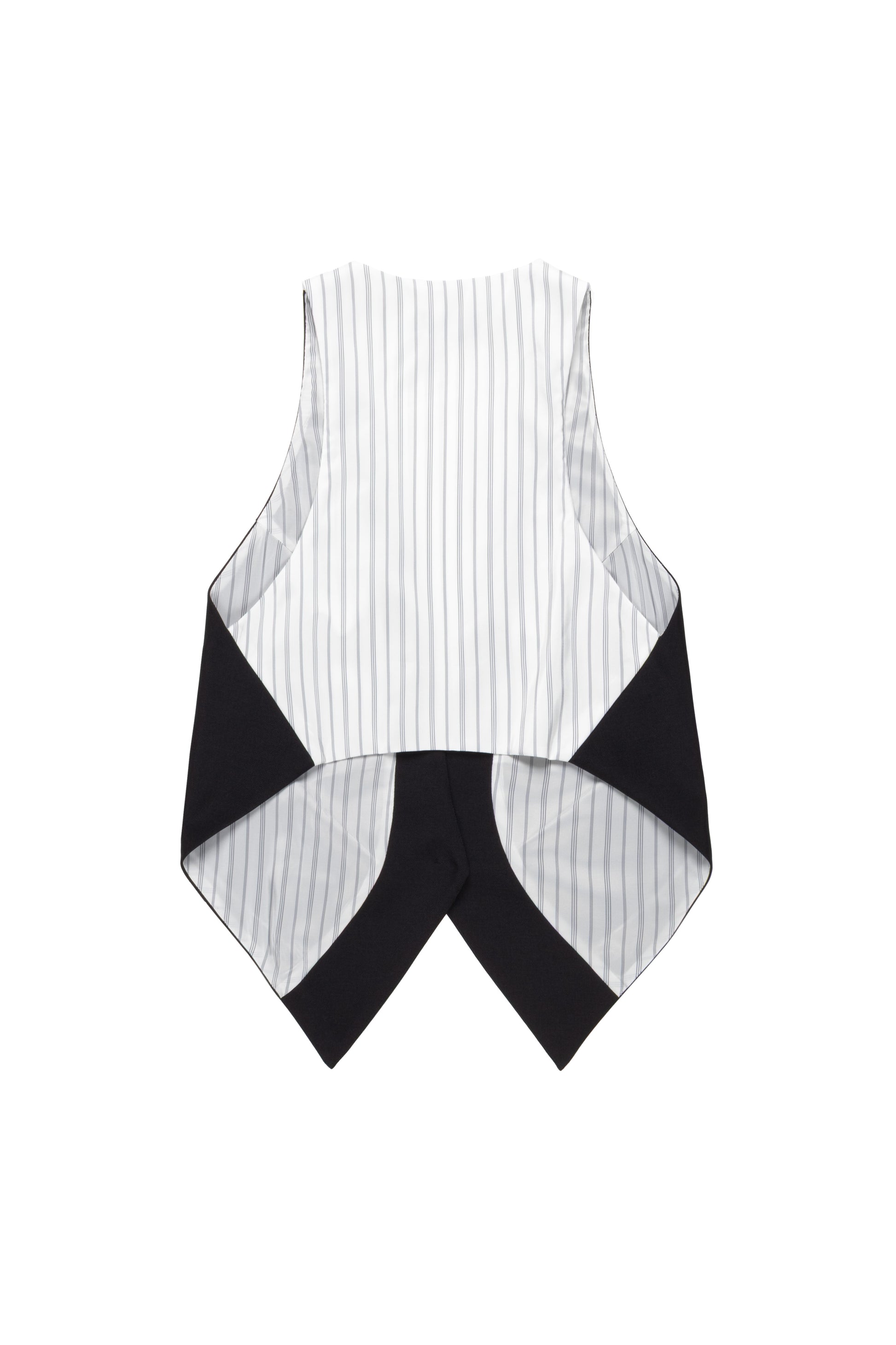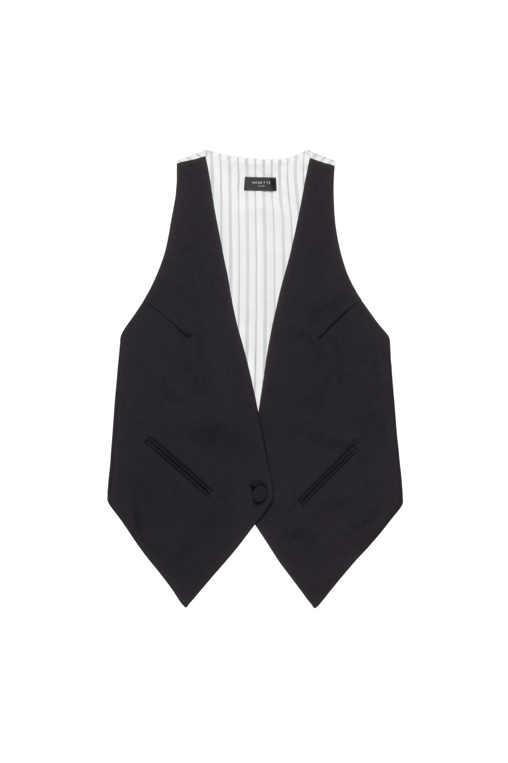 Gilet monopetto in twill poli, dal taglio sartoriale e linea pulita. Struttura leggera e vestibilità asciutta per un look moderno e versatile. Perfetto da indossare da solo o in abbinamento a giacche e camicie, aggiunge un tocco androgino e raffinato agli outfit.