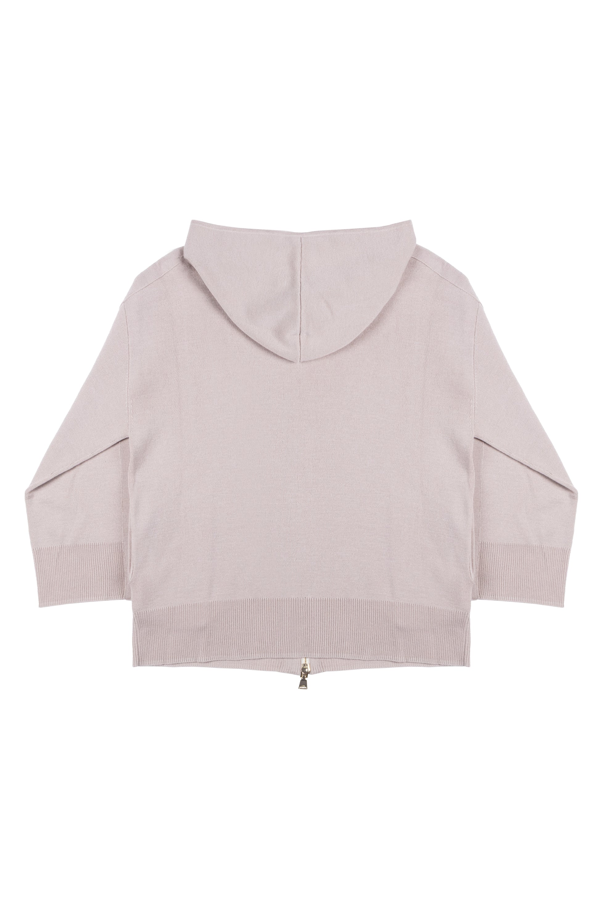 Maglia con zip e cappuccio, dal design sportivo e contemporaneo. Realizzata in maglia morbida, garantisce comfort e praticità senza rinunciare allo stile. Un capo versatile, perfetto per look quotidiani disinvolti ma curati.