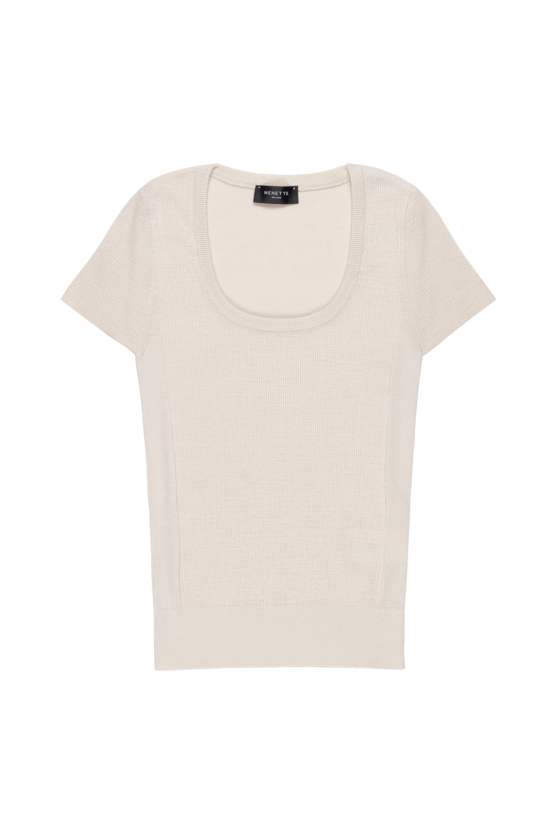 Semplice e versatile, questa maglia a mezza manica in lavorazione a costina esalta la femminilità con una linea aderente e confortevole. Un capo essenziale del guardaroba, perfetto per uno stile casual-chic, da indossare da sola o come base sotto giacche e cardigan per look eleganti e contemporanei.