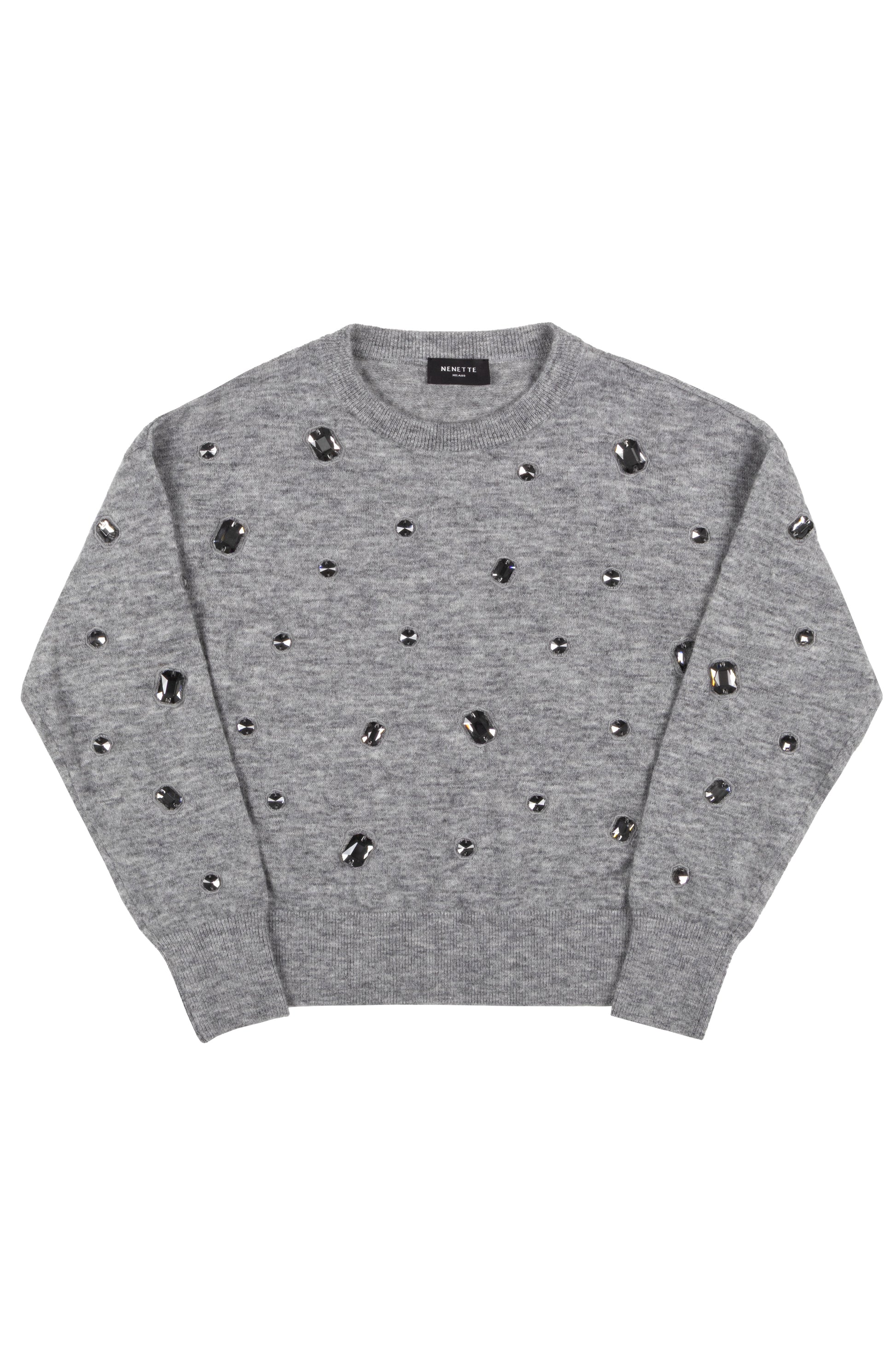 Maglia elegante ricoperta di pietre, luminosa e sofisticata. Un capo speciale che aggiunge brillantezza e femminilità ai look casual-chic, perfetto per occasioni in cui vuoi distinguerti con stile.