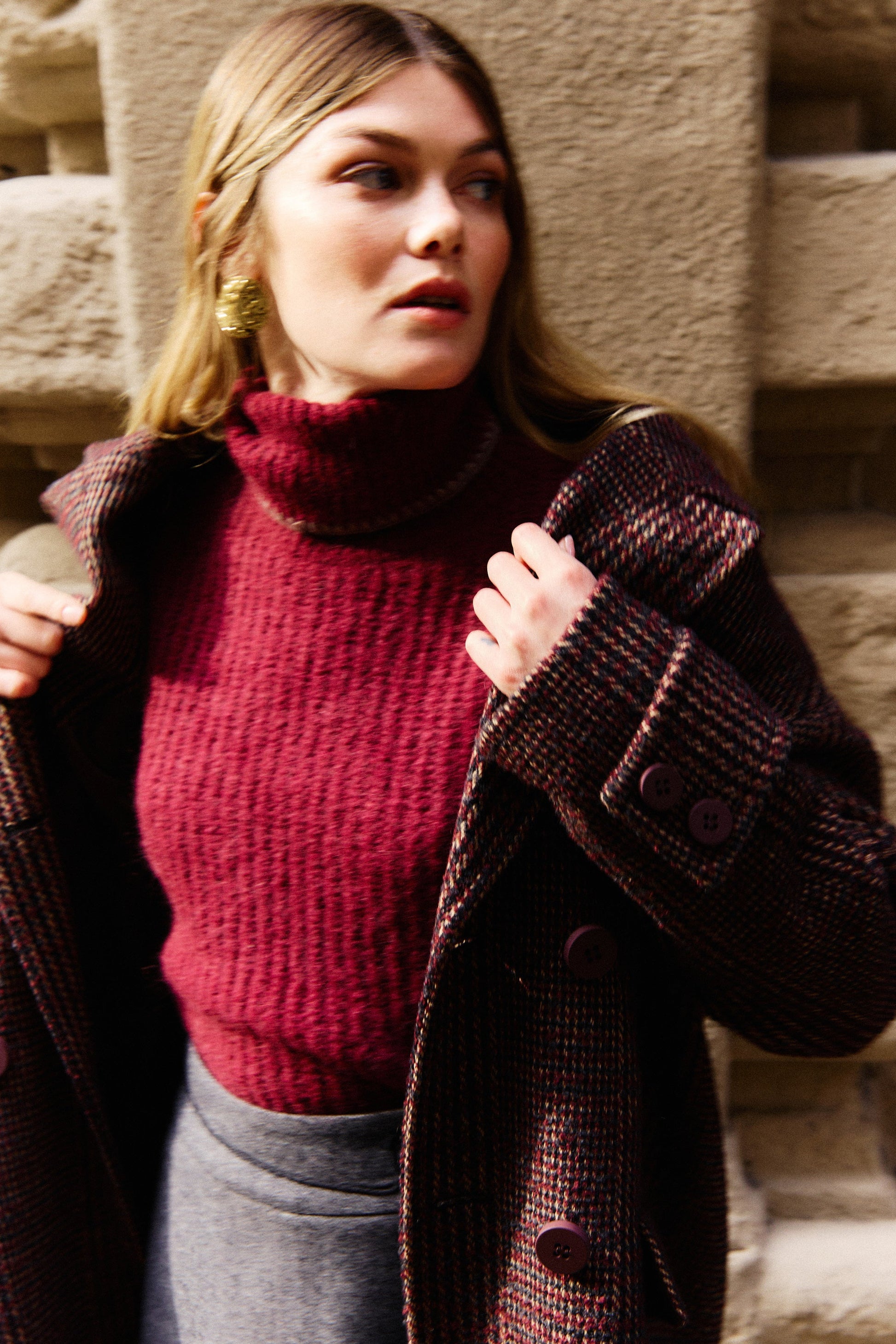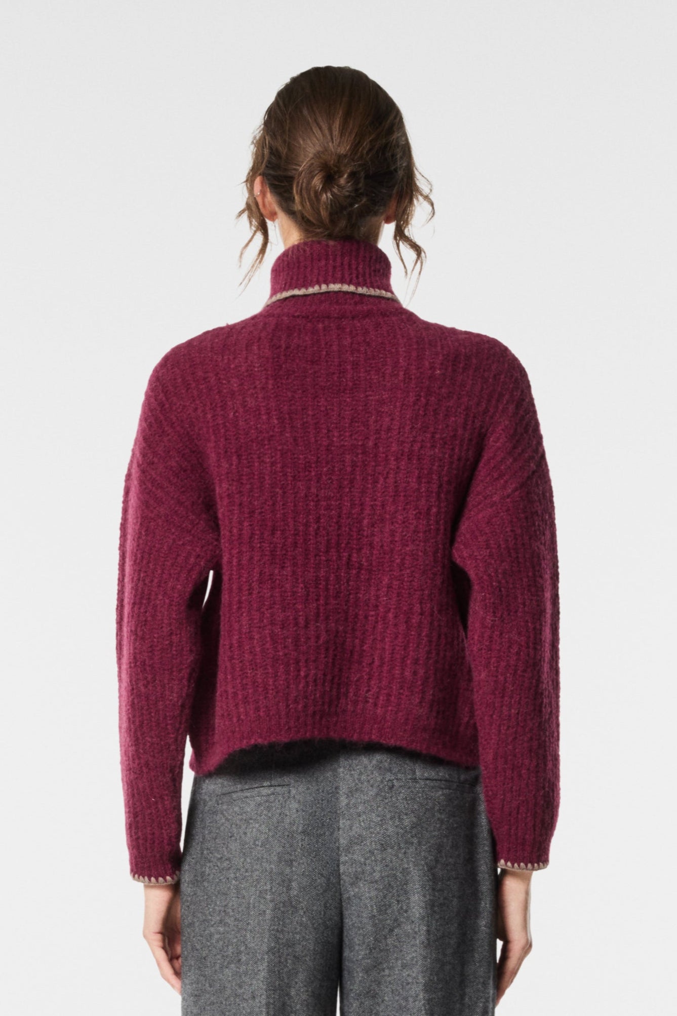 Collo alto in punto cavallo con rifinitura a contrasto, elegante e versatile. Morbida al tatto, valorizza la silhouette aggiungendo un dettaglio originale e discreto ai look quotidiani.