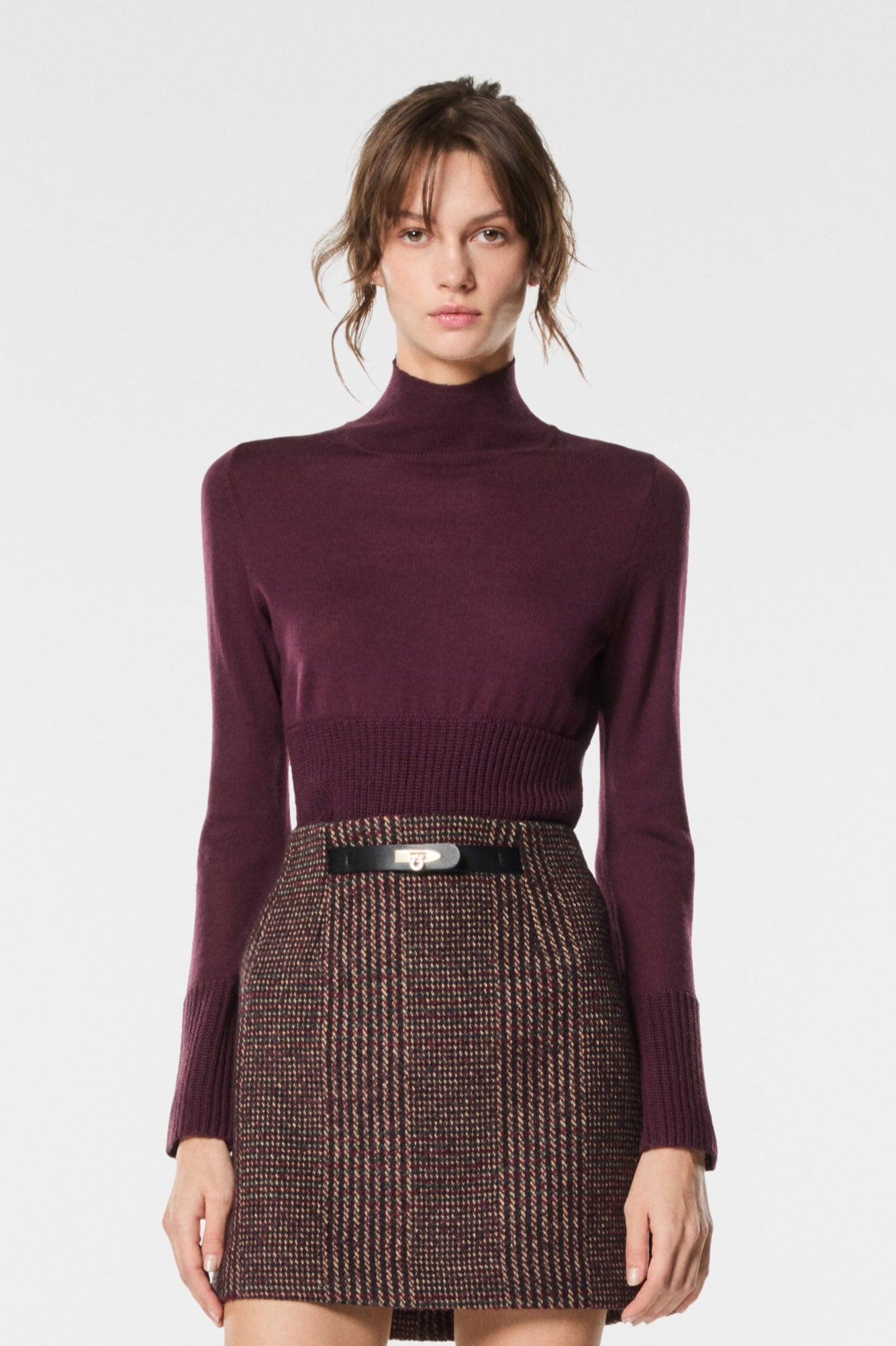 Maglia a collo alto elegante e confortevole, realizzato in tessuto soffice e leggero. Un must-have del guardaroba invernale, che valorizza la silhouette e completa outfit femminili e contemporanei.