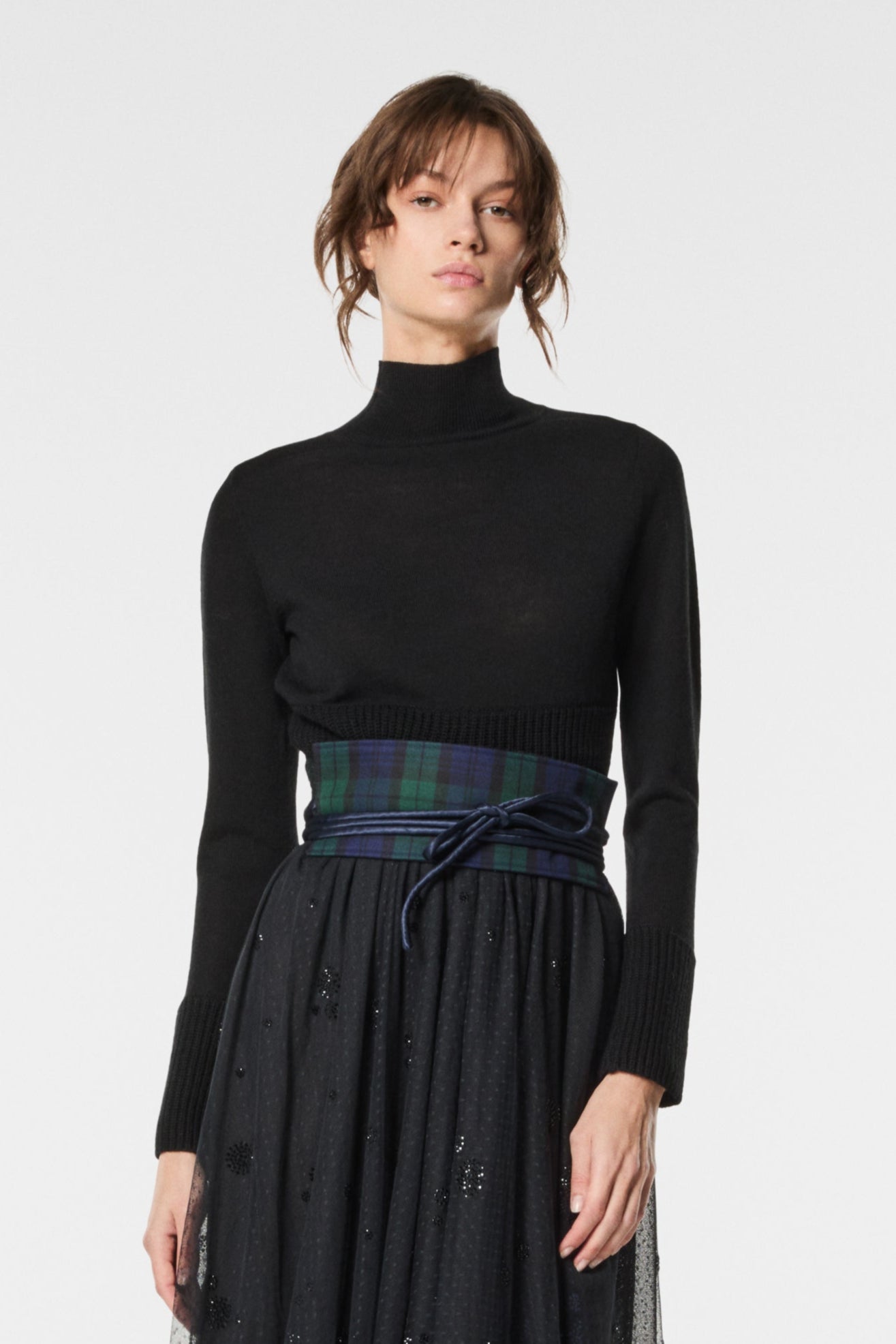 La modella è alta 177 cm e indossa una taglia 40.