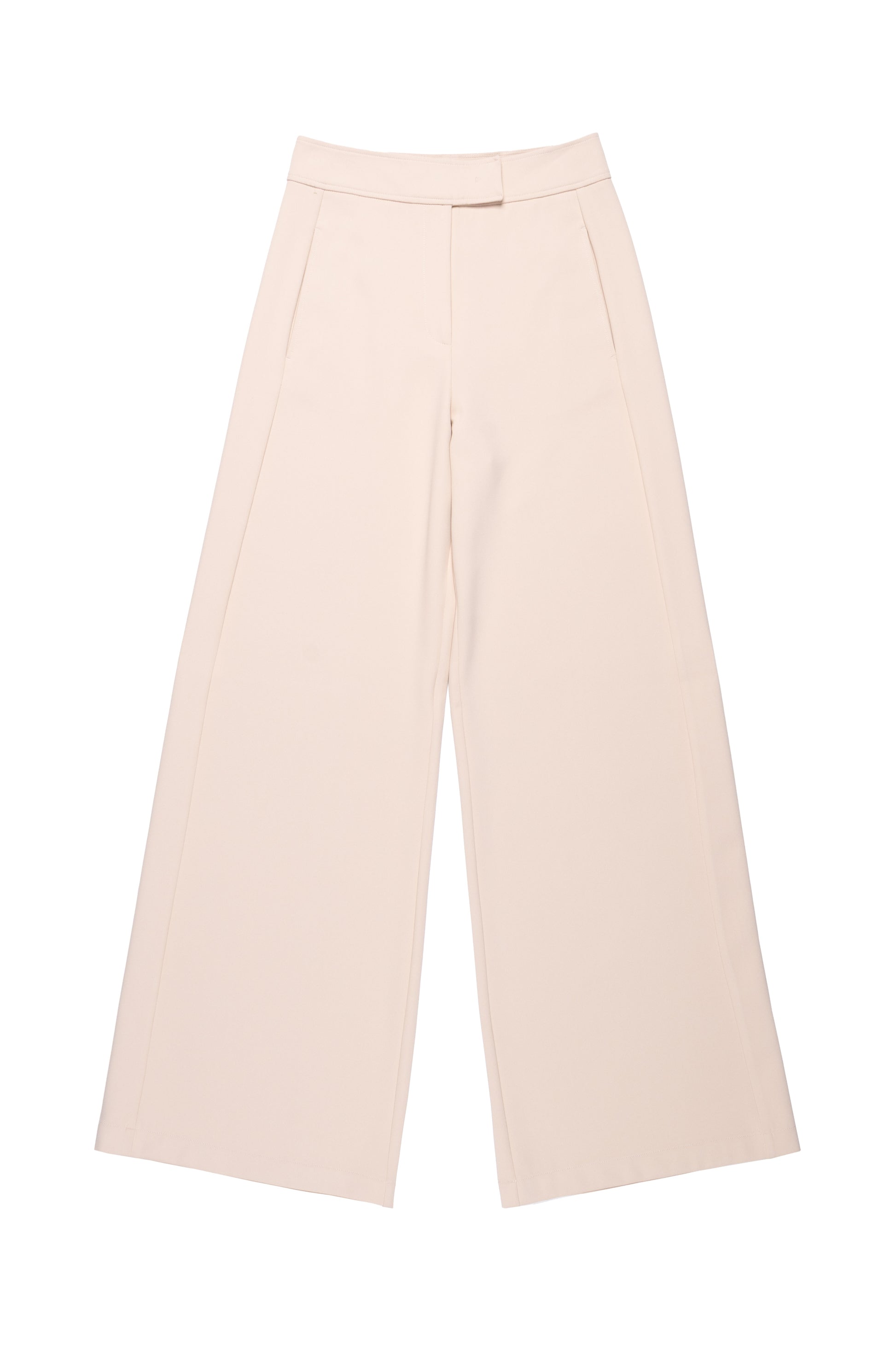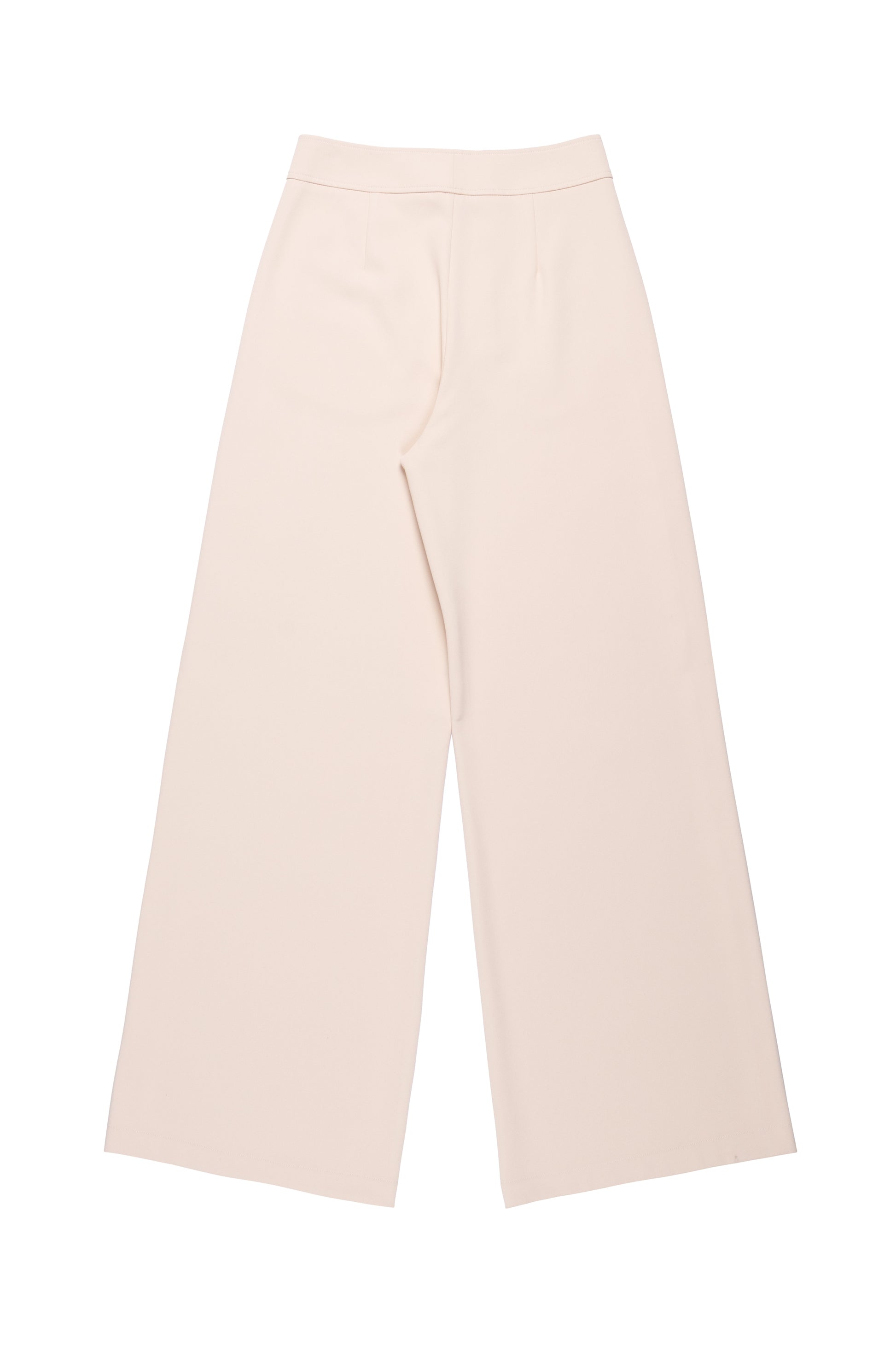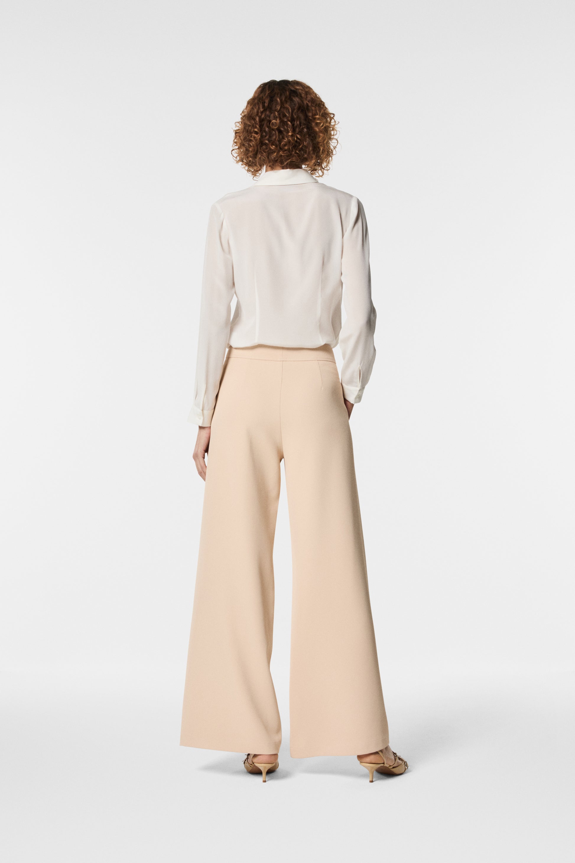 Pantalone a gamba larga in cady, elegante e fluido. Il tessuto morbido e leggermente strutturato dona una vestibilità impeccabile e slancia la figura. Perfetto per occasioni formali o per un look curato da giorno, è un capo che unisce comfort e stile con naturale raffinatezza.