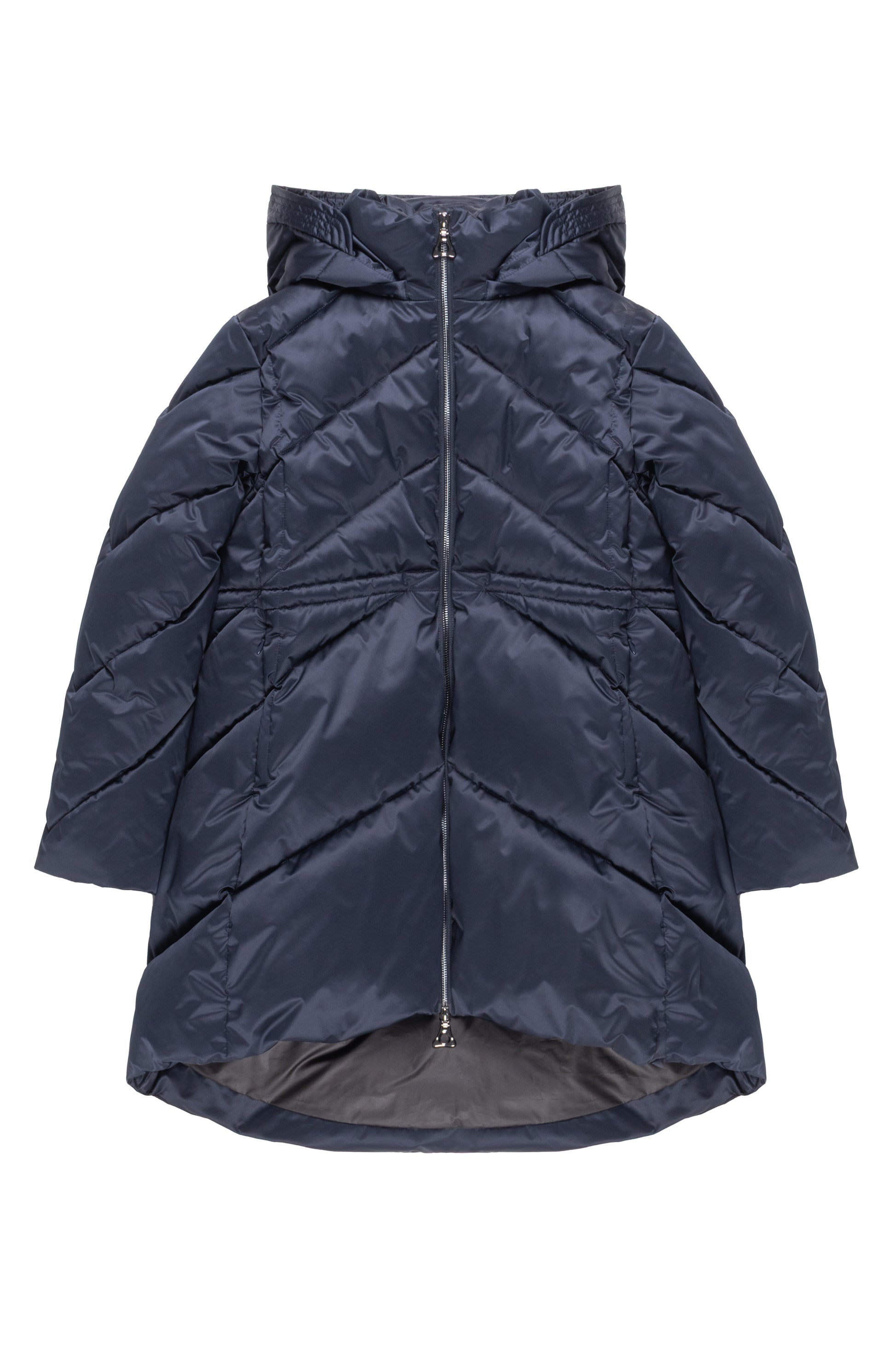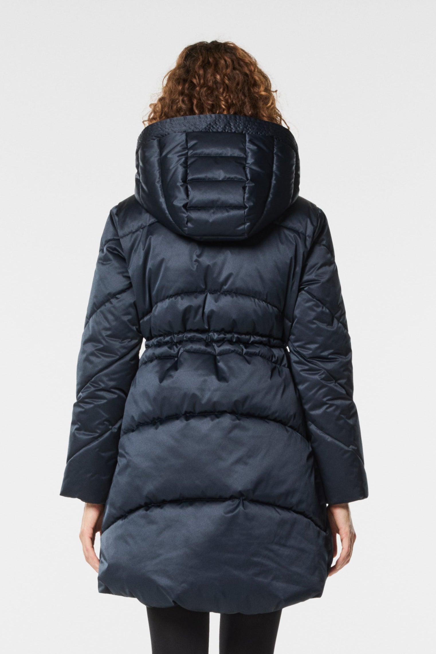 Piumino lungo con cappuccio in tessuto raso, morbido e luminoso. La linea avvolgente garantisce comfort e protezione, mentre la finitura elegante dona un tocco sofisticato anche ai look più pratici. Un capo versatile e contemporaneo, perfetto per affrontare la stagione fredda con stile e raffinatezza.