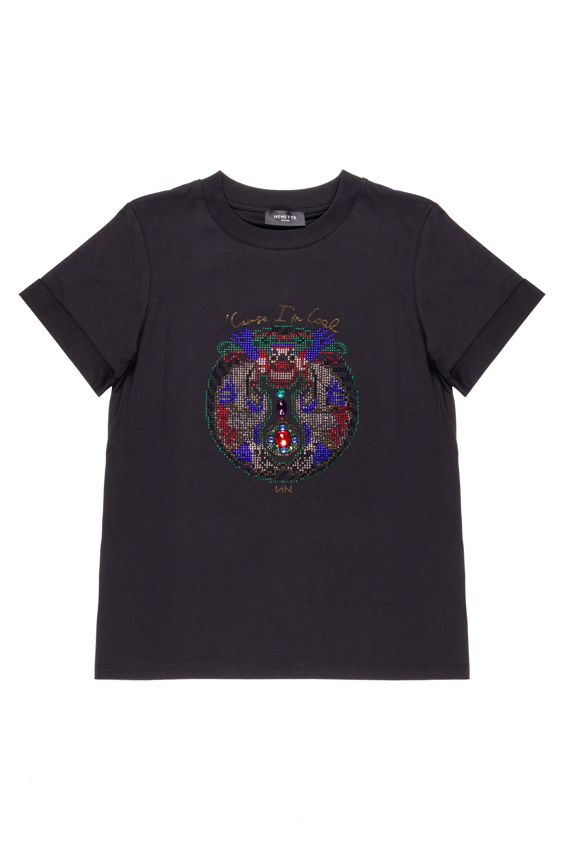T-shirt manica corta in morbido cotone, fresca e confortevole. Il rosone hotfix disegnato dona un dettaglio brillante e sofisticato, rendendo il capo unico. Ideale per outfit casual con un tocco di eleganza discreta e moderna, perfetta per la vita di tutti i giorni.