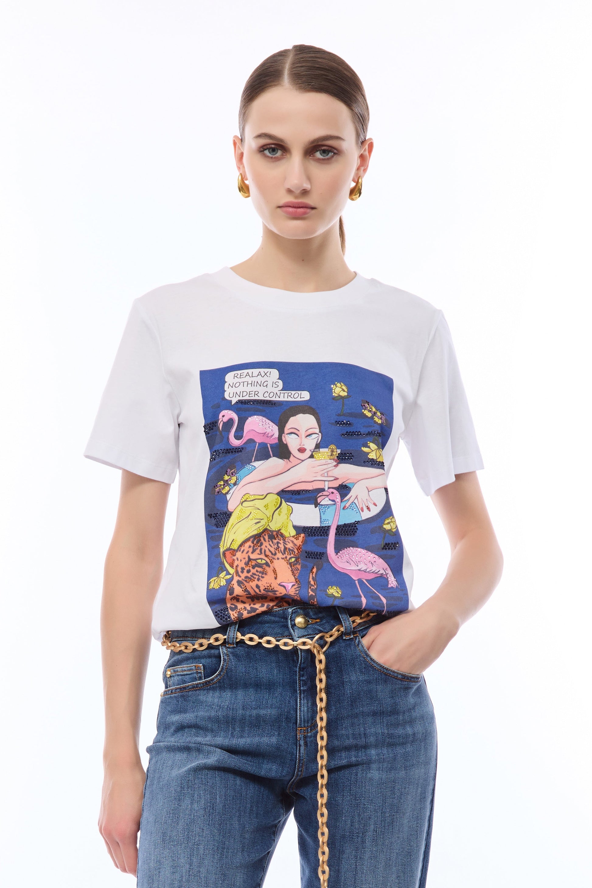 Questa t-shirt a manica corta con illustrazione "Tiger" combina forza e personalità. Il tessuto in cotone offre comfort e traspirabilità in ogni stagione. Un capo che parla di carattere e consapevolezza stilistica, ideale per chi ricerca autenticità e modernità.